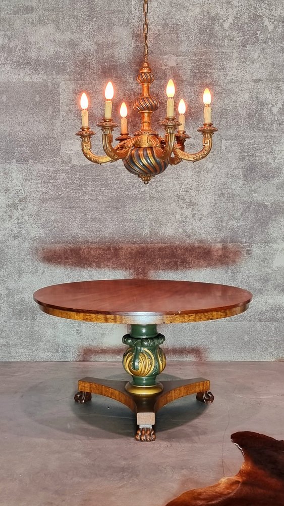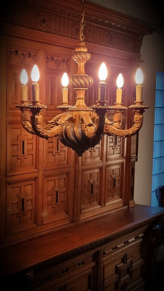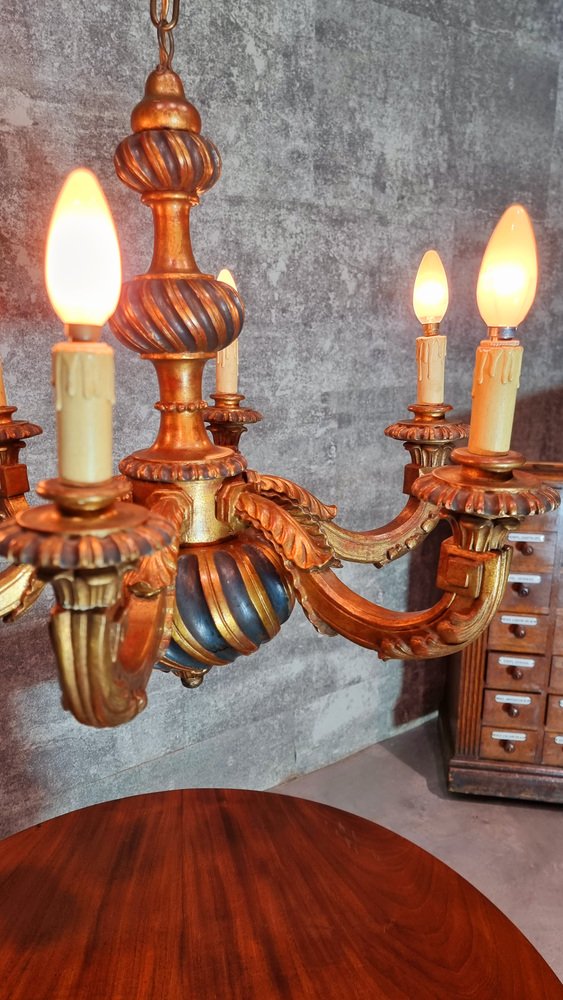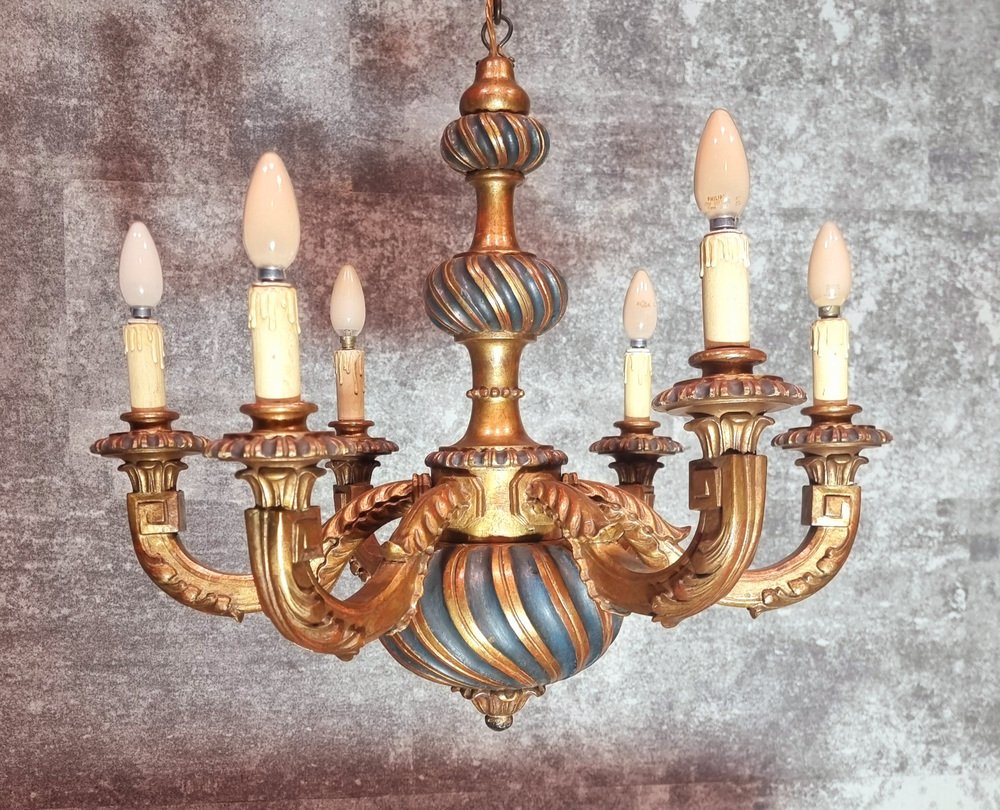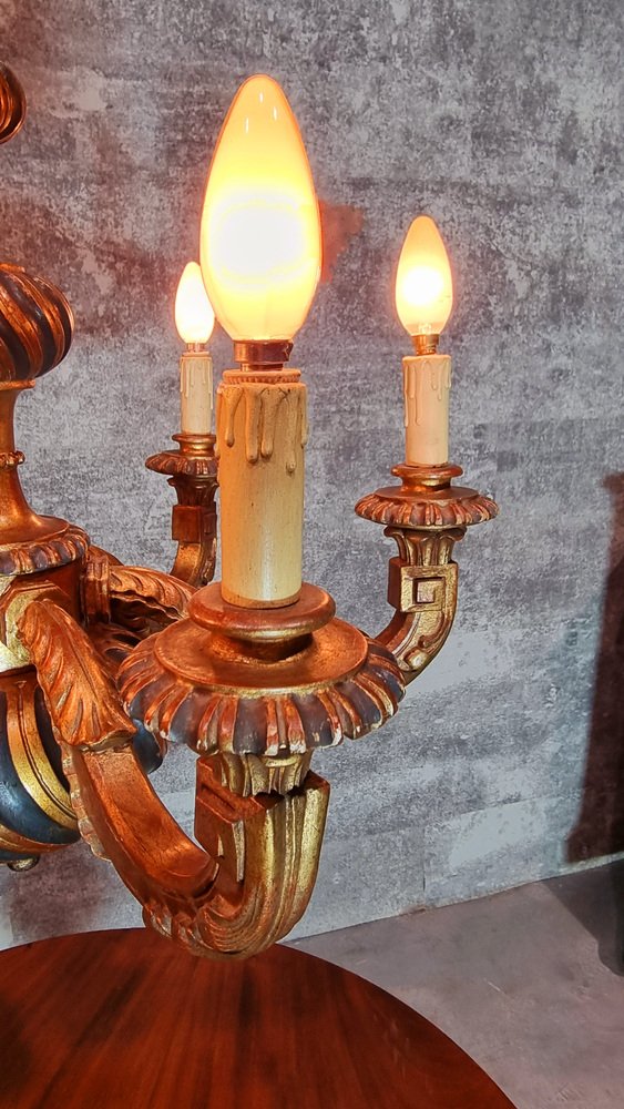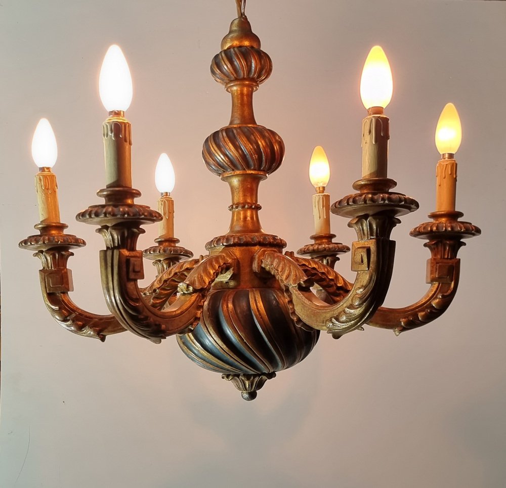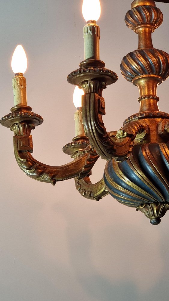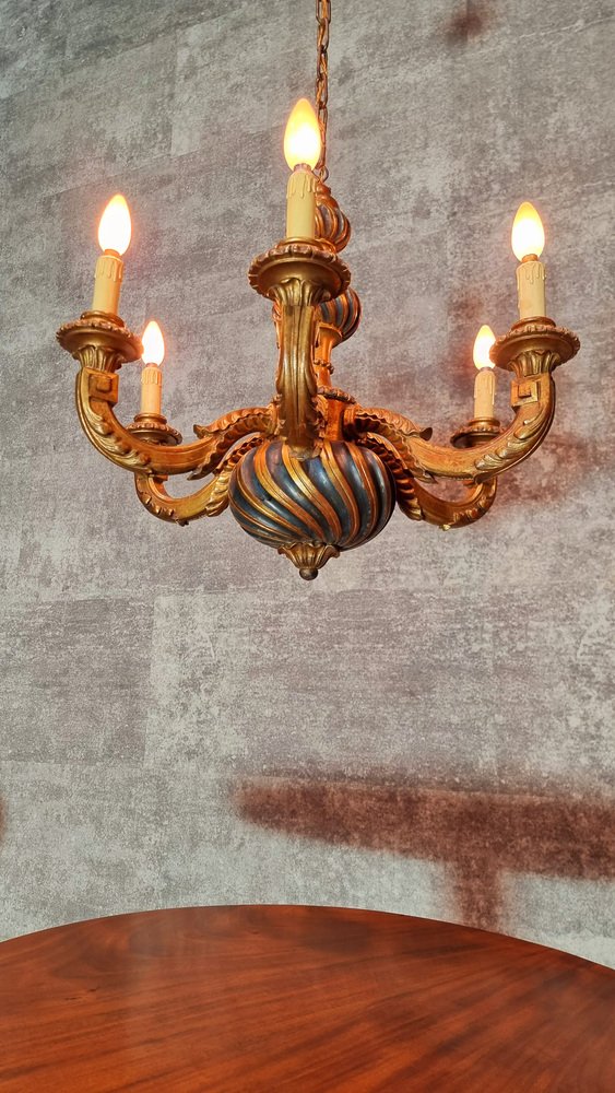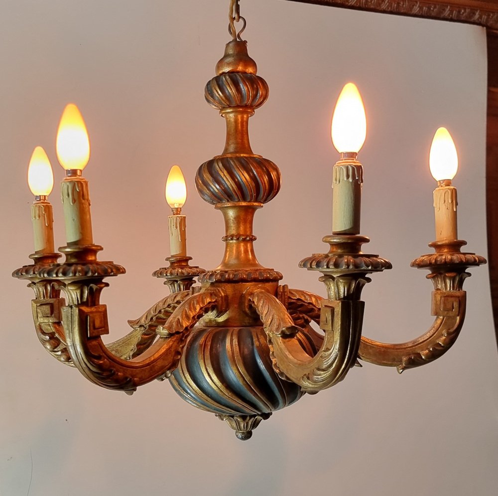 19th Century French Napoleon III Style Hand-Carved and Gilt Painted 6-Light Wooden Chandelier