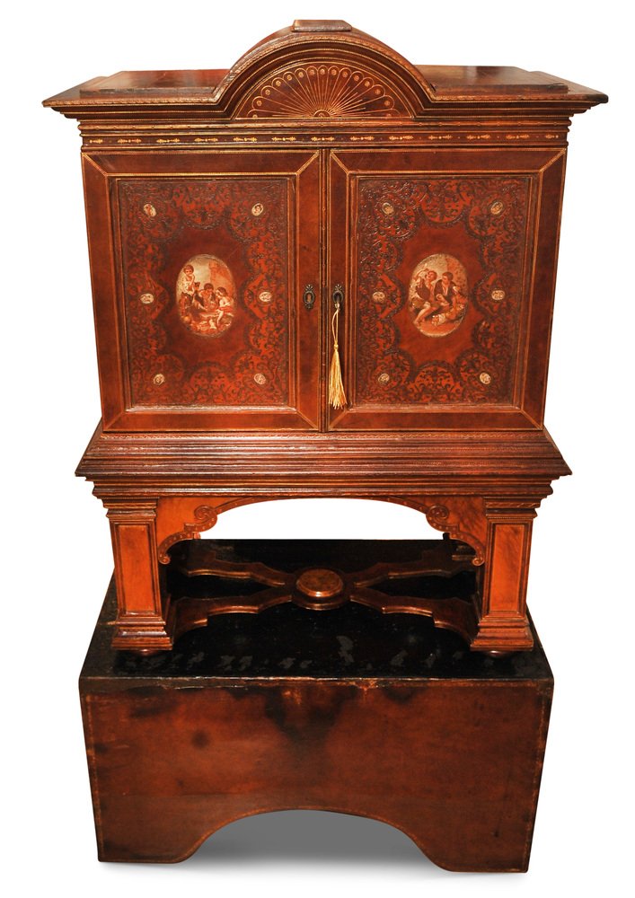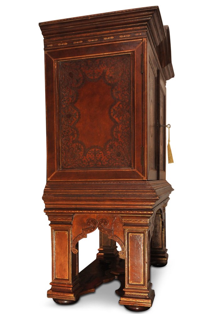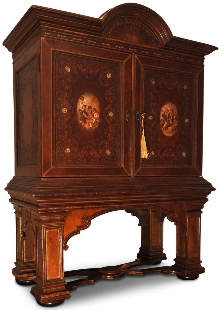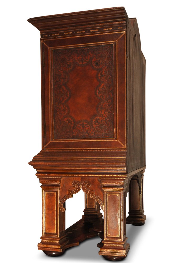 19th Century Italian Renaissance Handcrafted Tooled Collectors Cabinet, 1890s