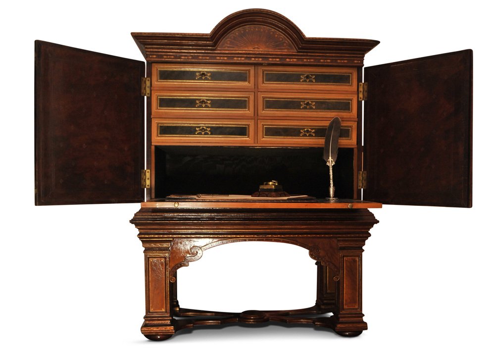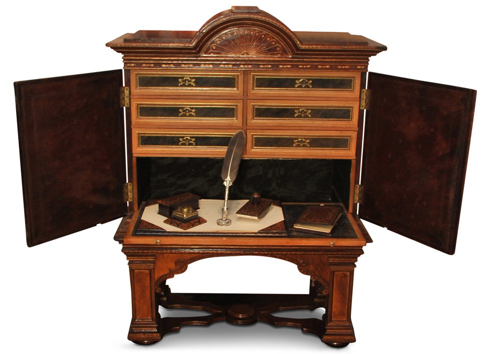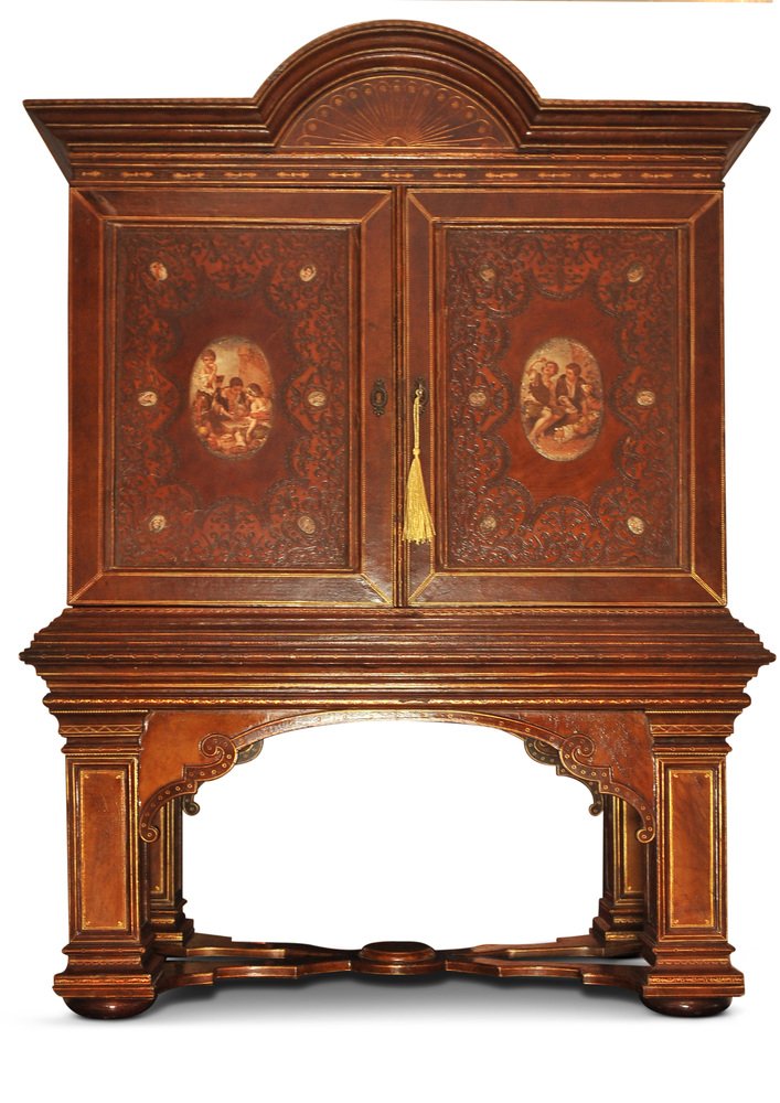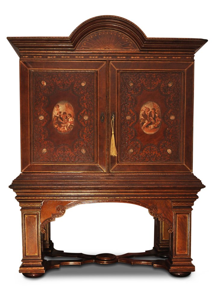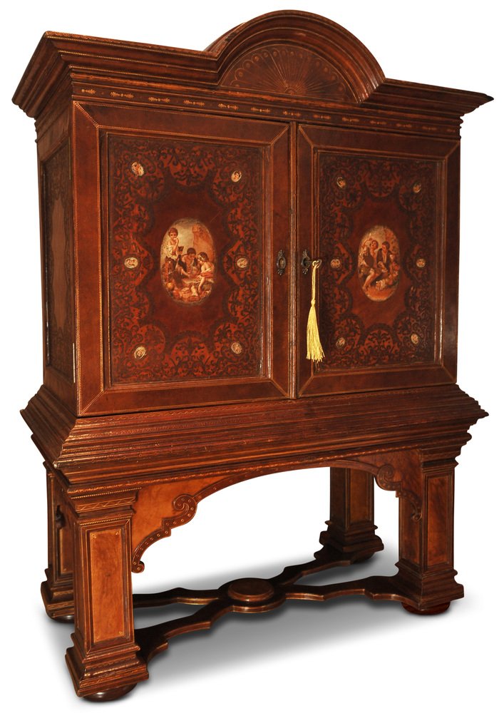19th Century Italian Renaissance Handcrafted Tooled Collectors Cabinet, 1890s