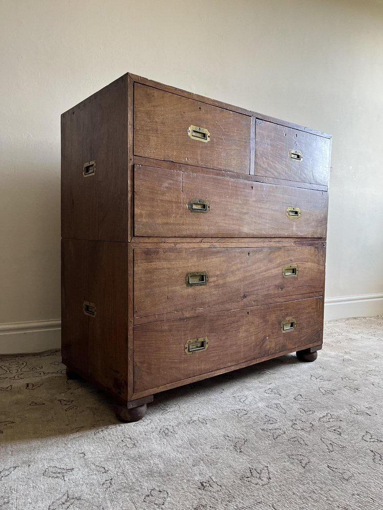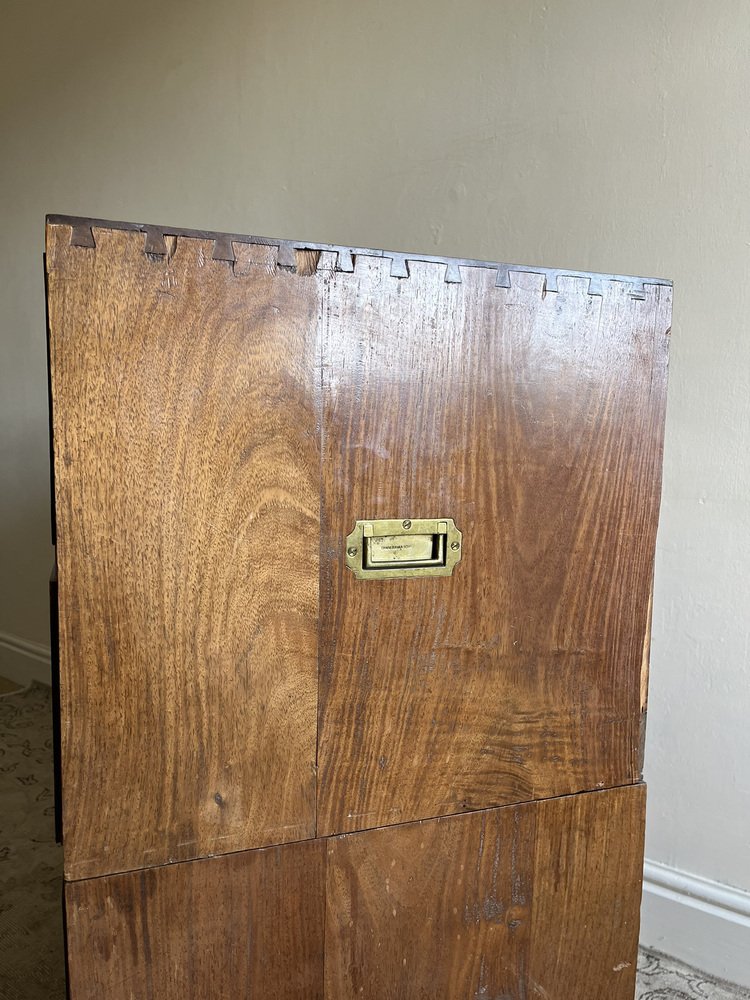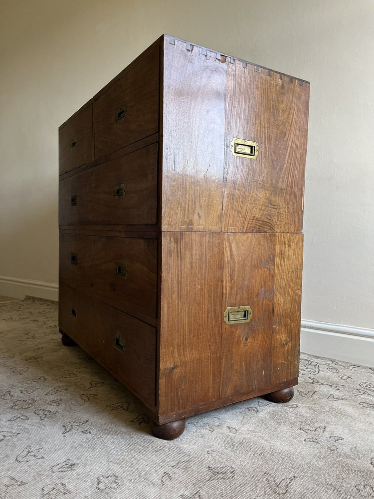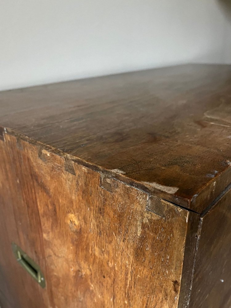 19th Century Military Campaign Chest of Drawers in Teak Wood and Brass
