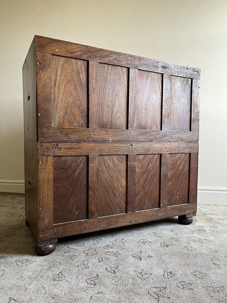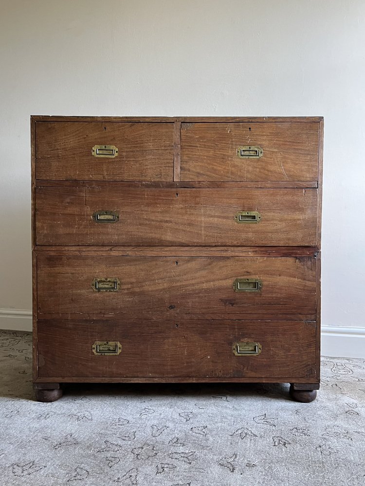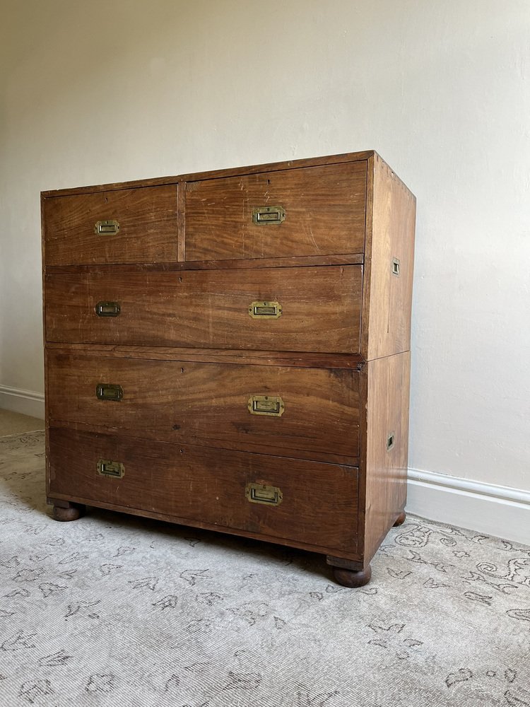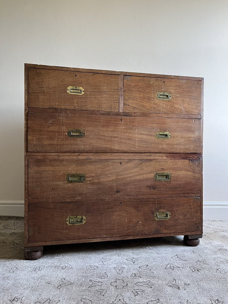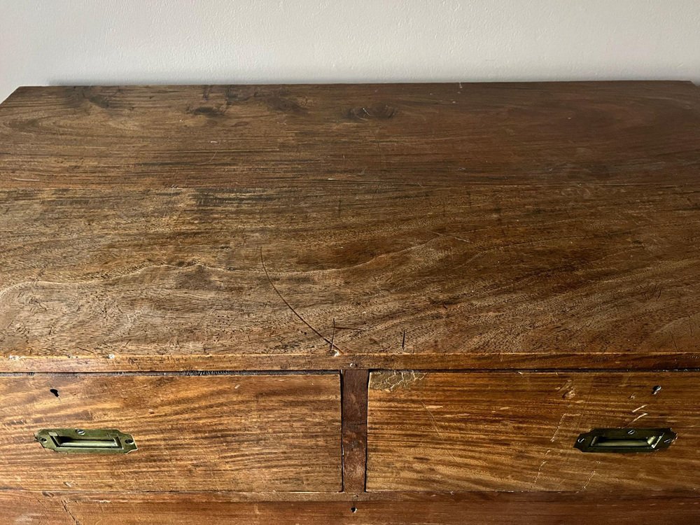 19th Century Military Campaign Chest of Drawers in Teak Wood and Brass
