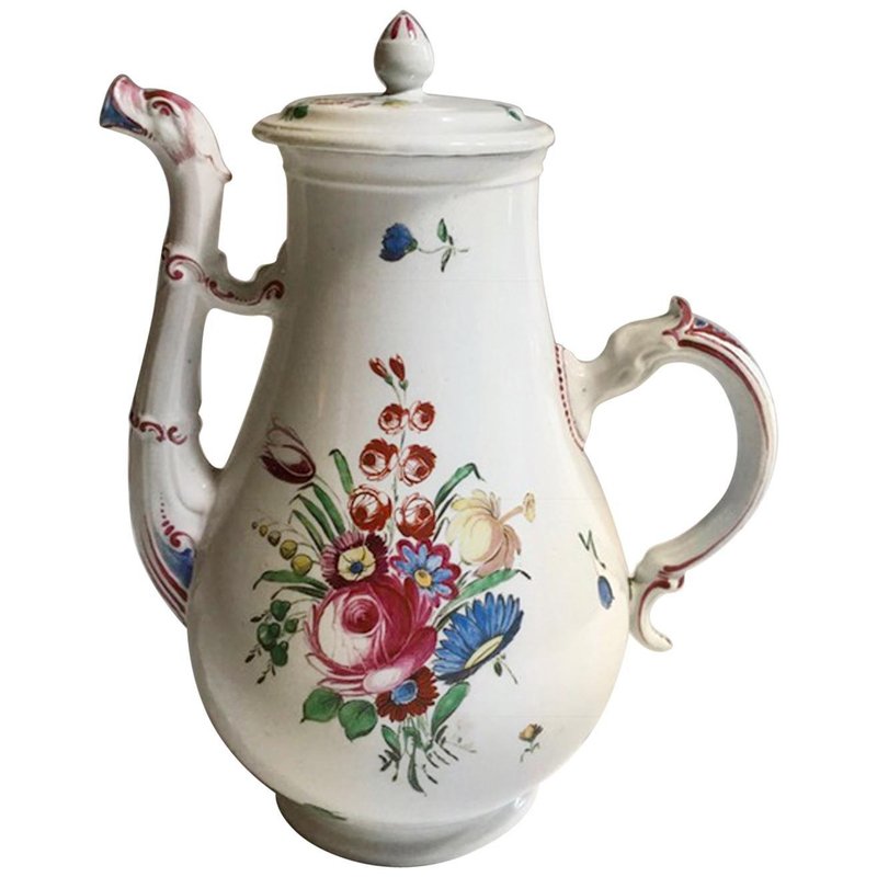 19th Century Porcelain Coffee Pot with Flowers Decor by Richard Ginori, 1810