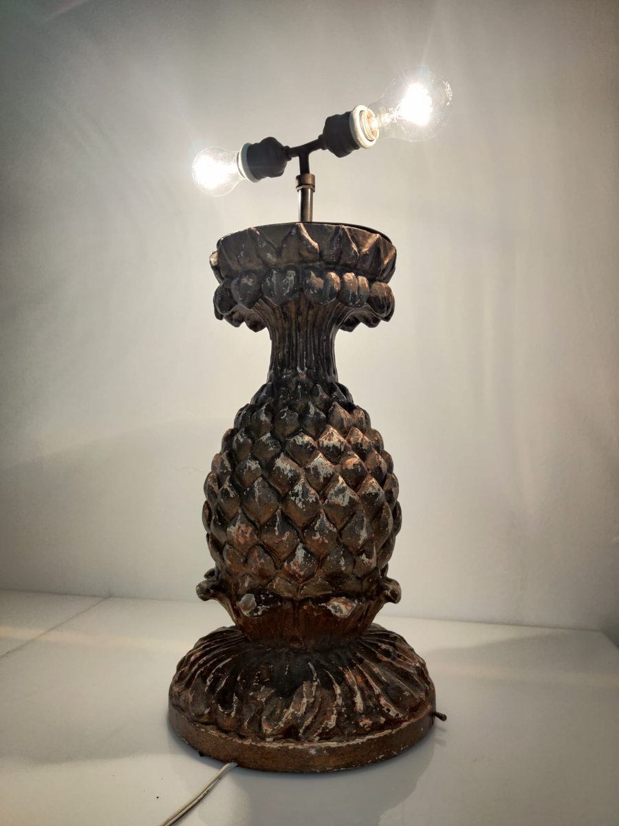 19th Century Stuccoed Wooden Pineapple Table Lamp