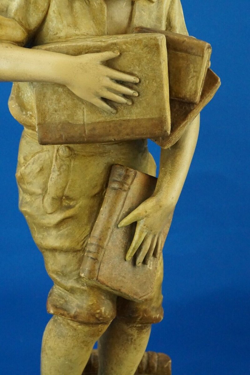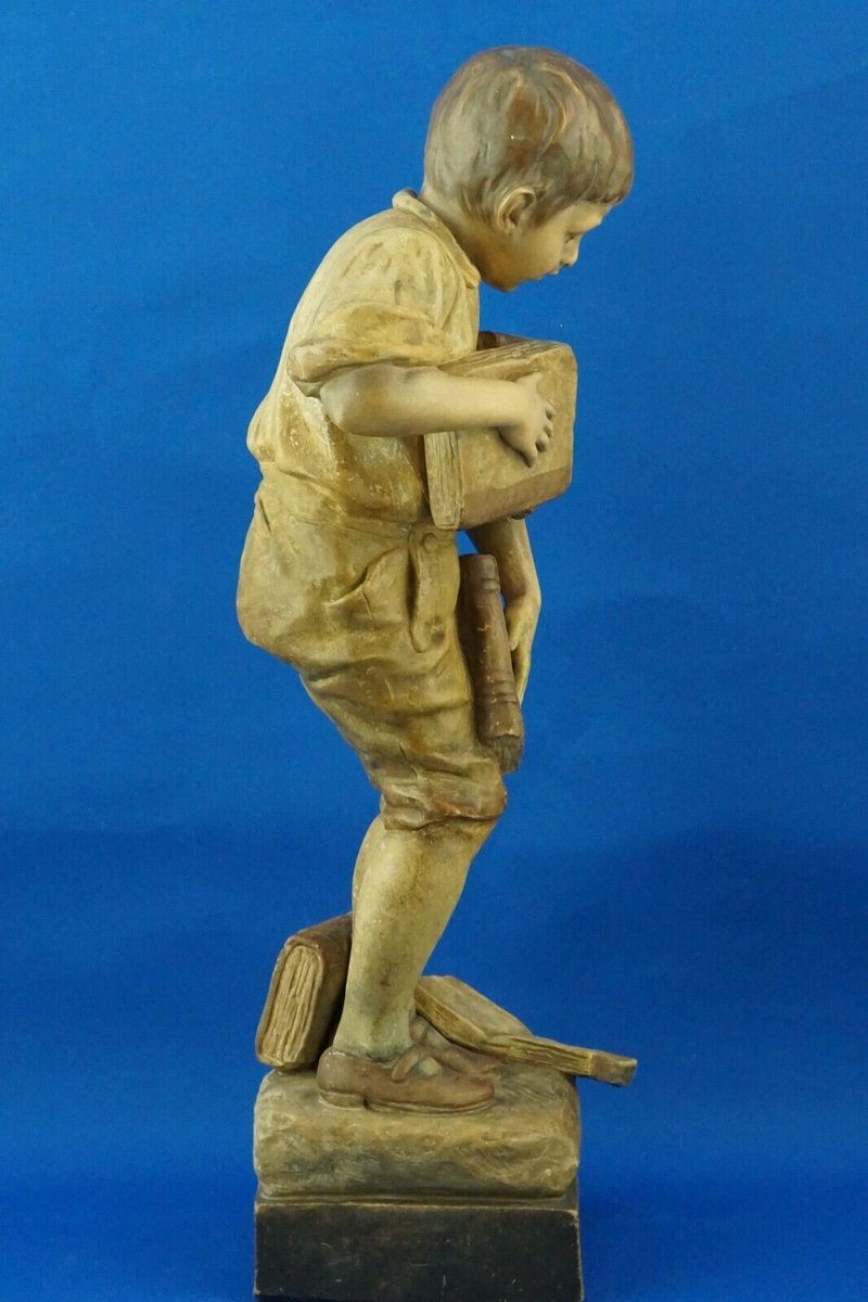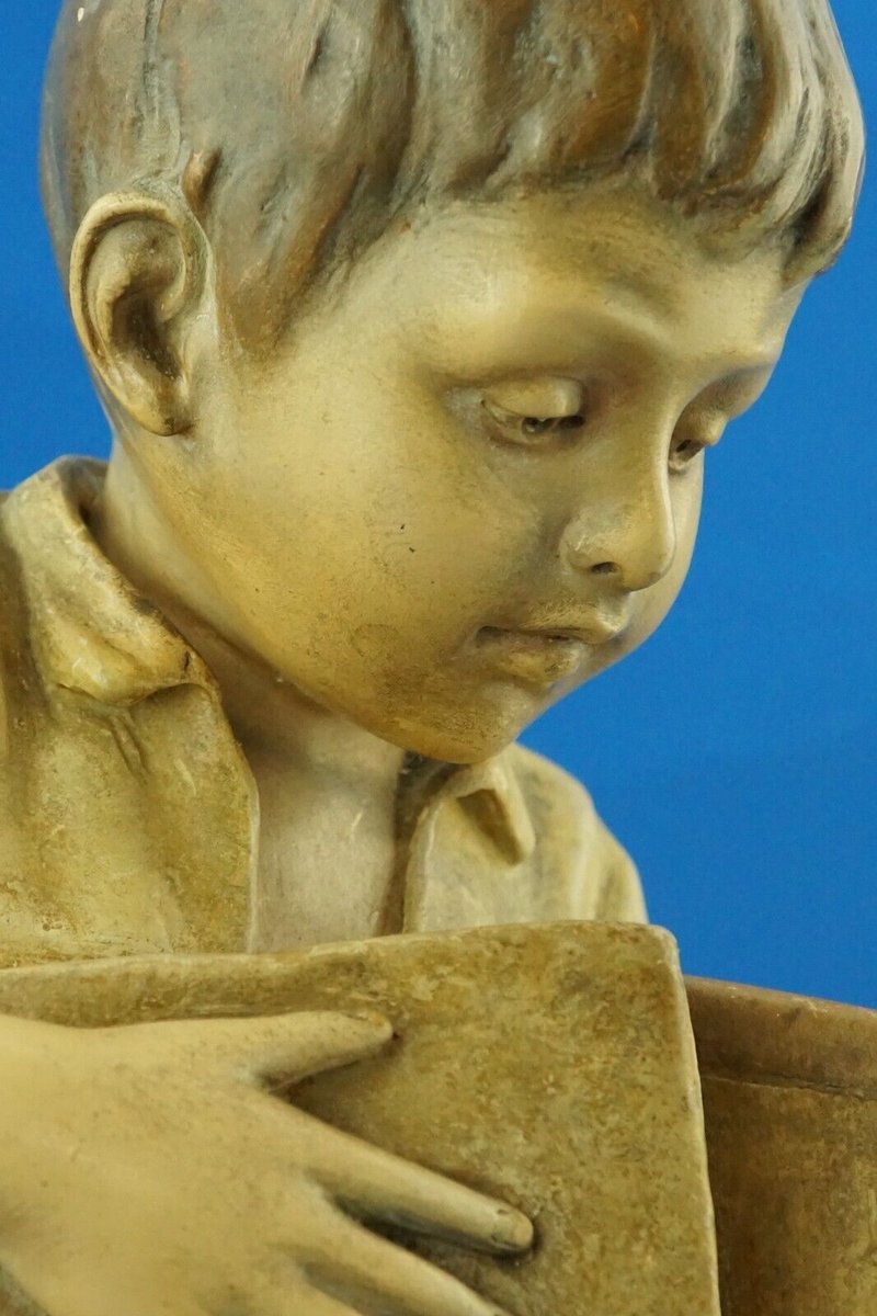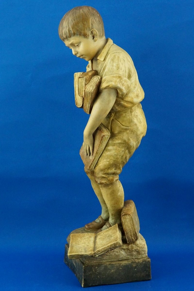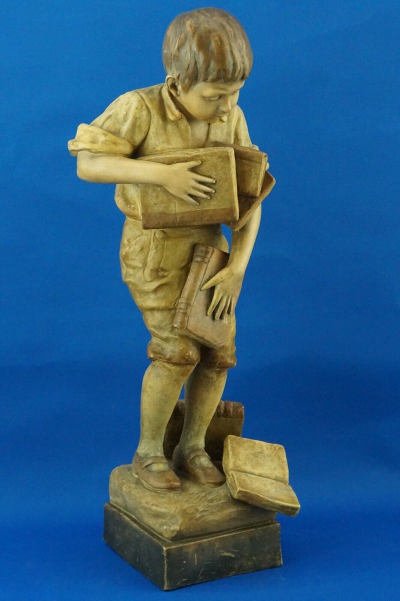 19th Century Terracotta Sculpture Child with Books by Otto Petri for Goldscheider, Austria, 1800s