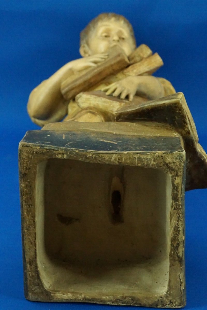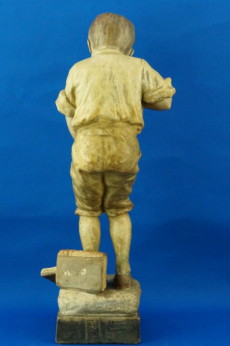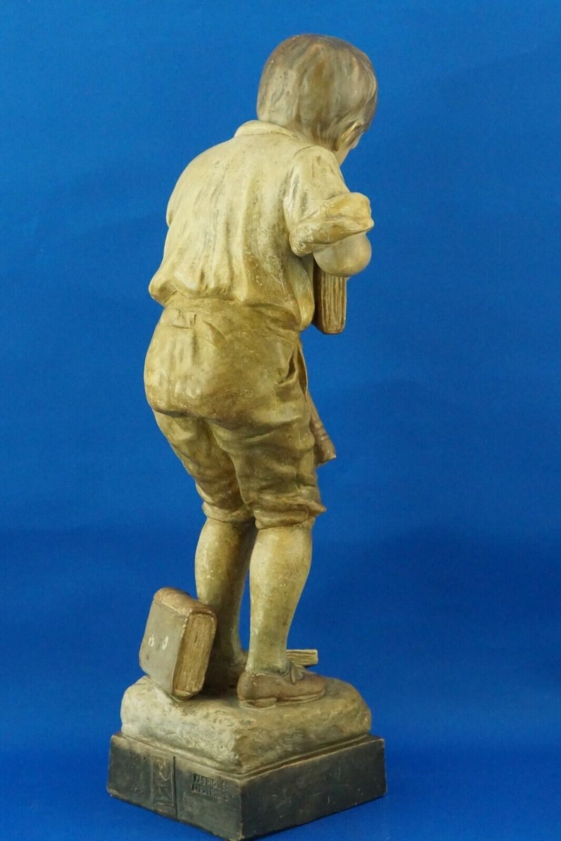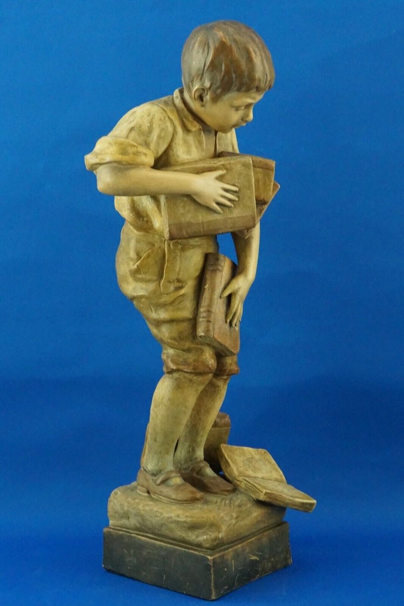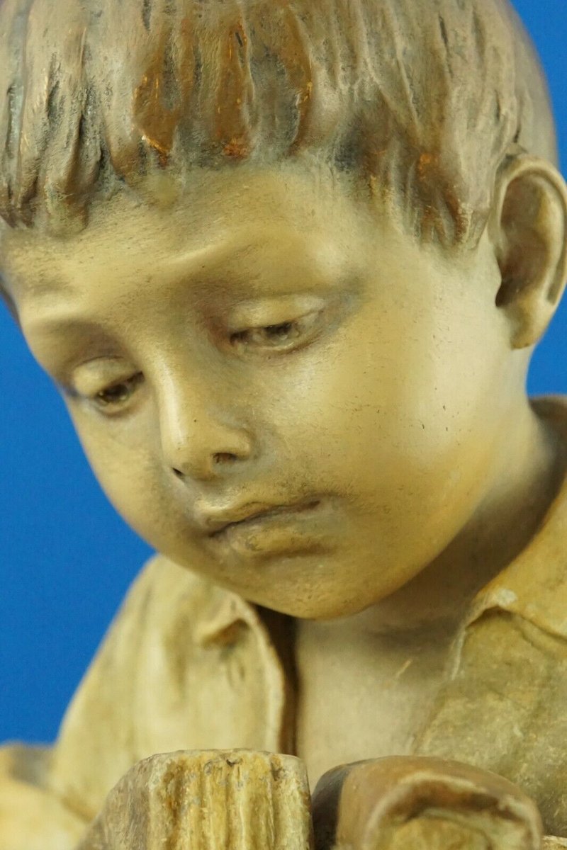 19th Century Terracotta Sculpture Child with Books by Otto Petri for Goldscheider, Austria, 1800s