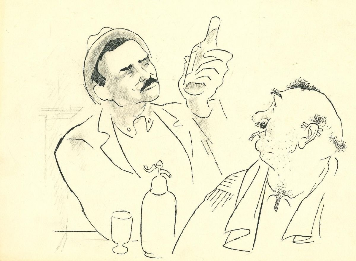 Adolf Reinhold Hallman, Drinkers in Bar, China Ink Drawing, 1956