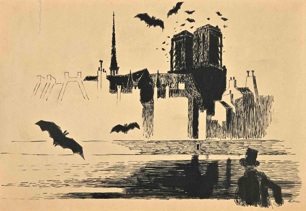 Adolf Reinhold Hallman, Notre Dame de Paris, Pen Drawing, Mid-20th Century