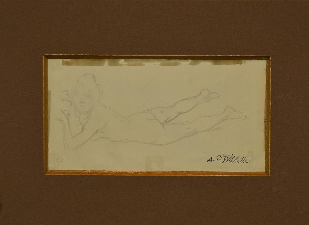 Adolphe Léon Willette, Nude of Woman, Pencil Drawing, Early 20th Century