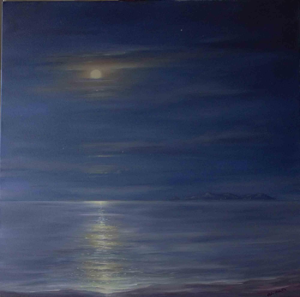 Adriano Bernetti da Vila, Full Moon Over Ponza, Original Painting, 2018