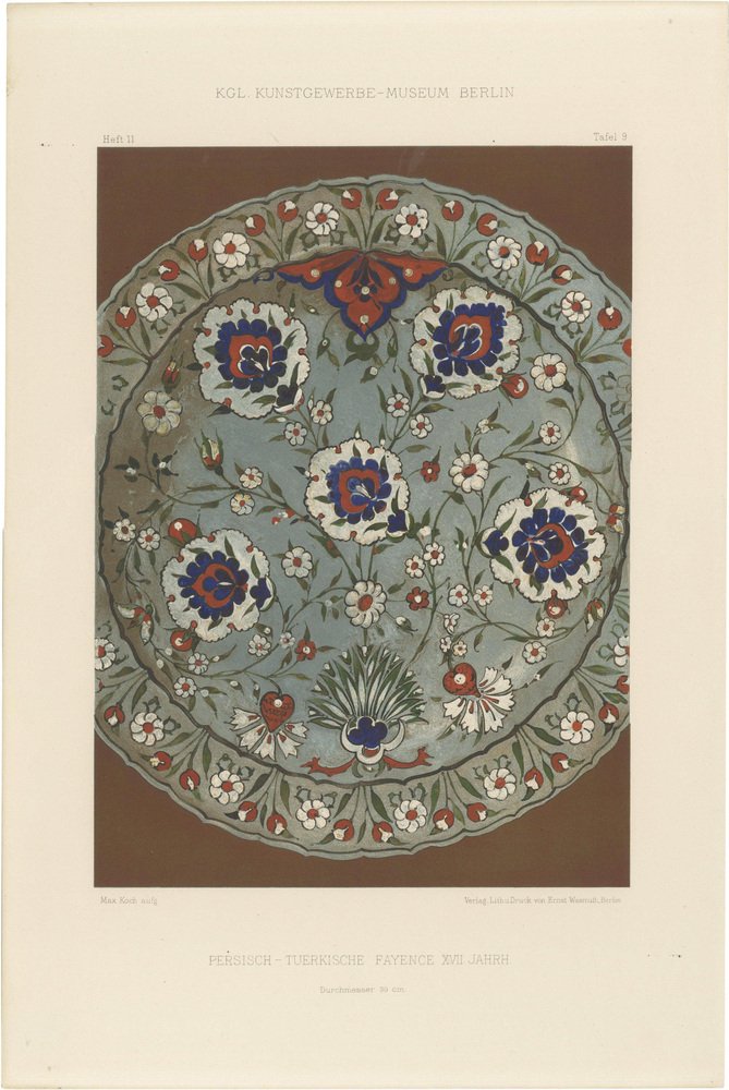 After Max Koch, Middle Eastern Faience Plate with Carnation Motif, 1890, Print