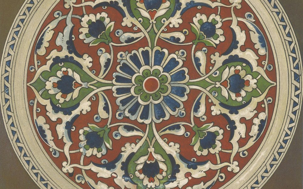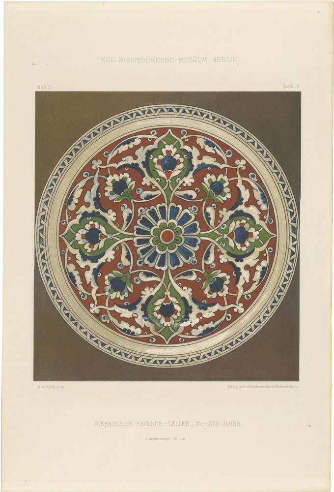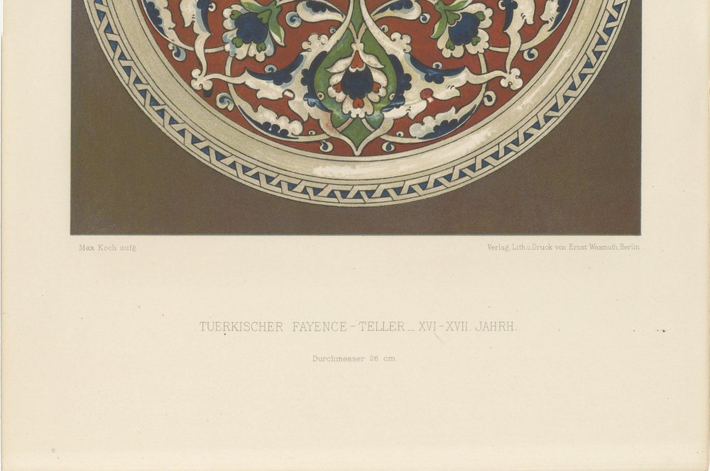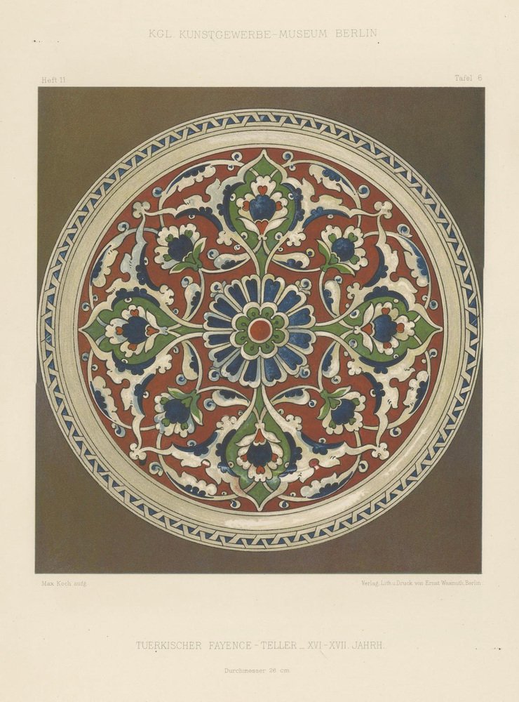 After Max Koch, Turkish Faience Plate with Stylized Floral Medallion, 1890, Print