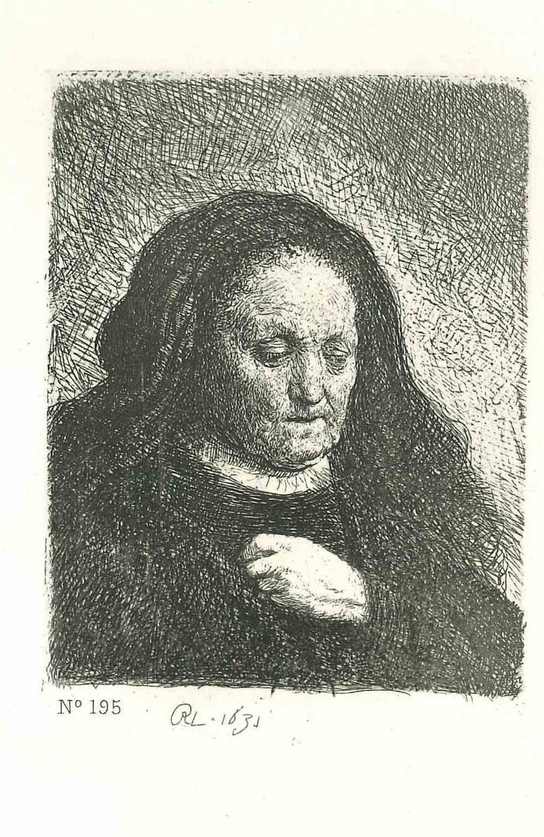 After Rembrandt, The Artist's Mother with Her Hand, Etching, 19th Century
