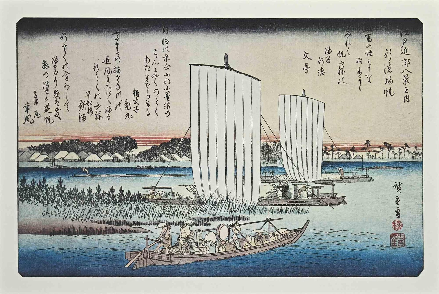 After Utagawa Hiroshige, Eight Scenic Spots, Lithograph, Mid 20th-Century