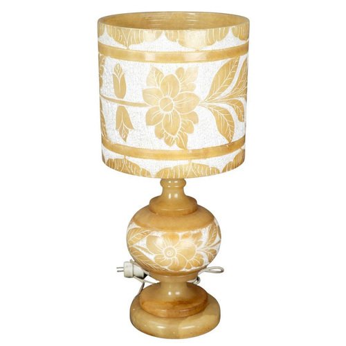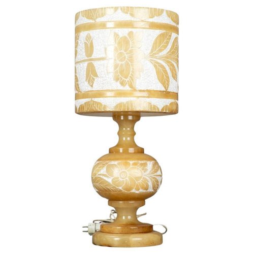 Alabaster Table Lamp with Floral Decorations, 1980s