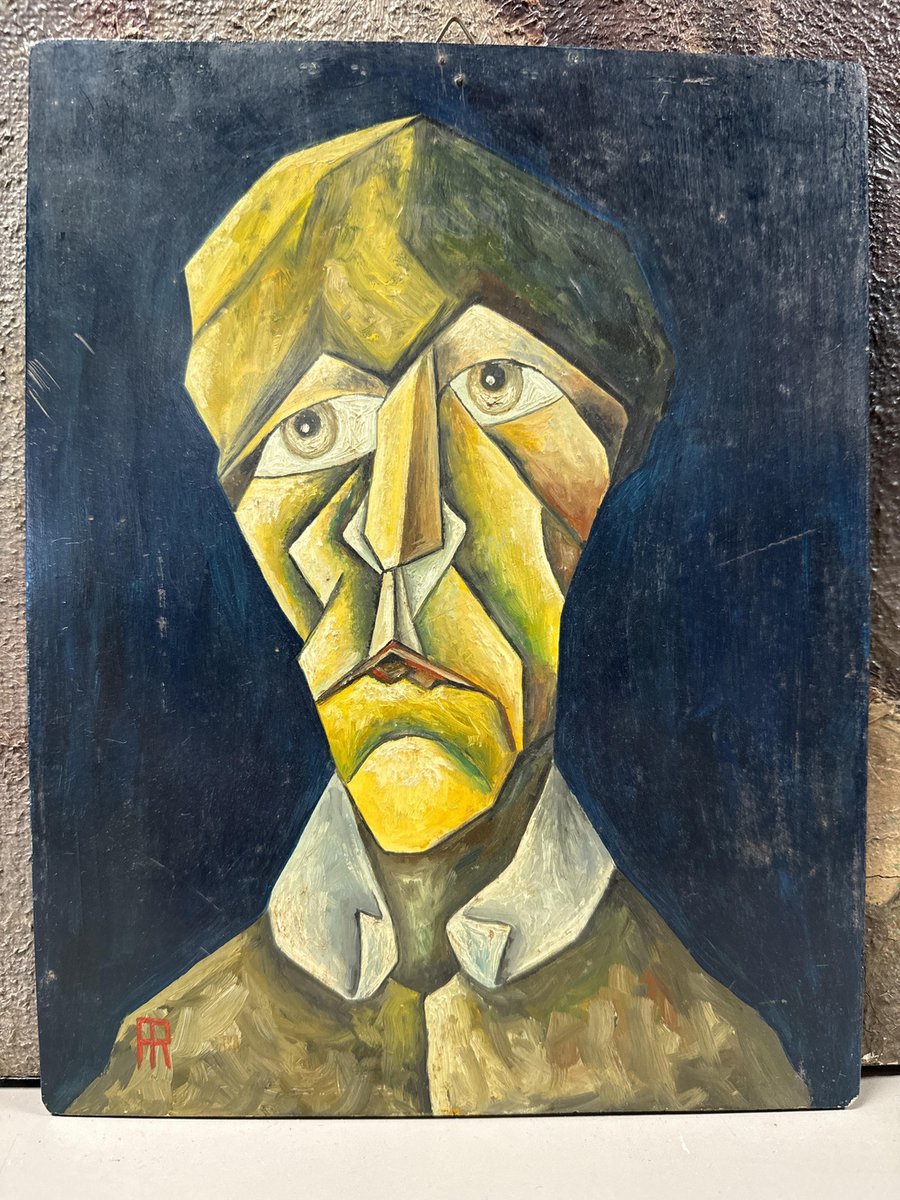 Alain Rigollier, Cubist Portrait, Oil on Wood, 1990s