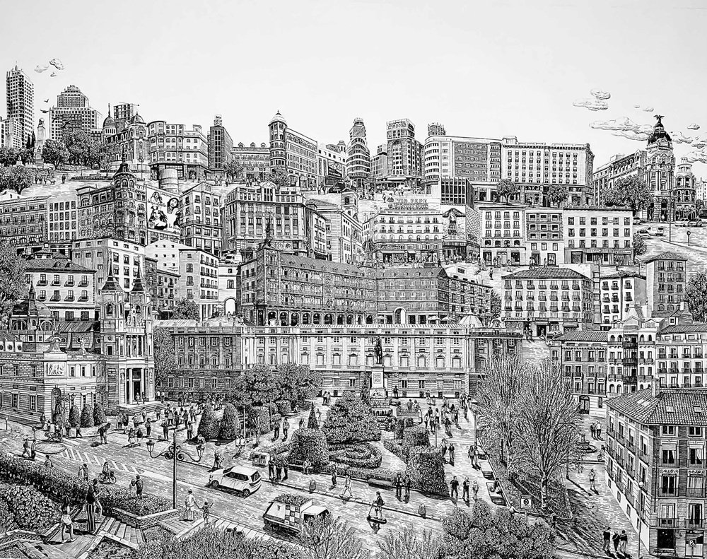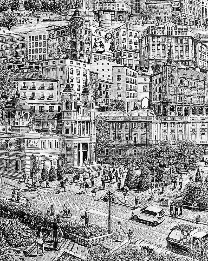 Alina Muressan, Madrid Centro, Ink and Brush on Canvas, 2024