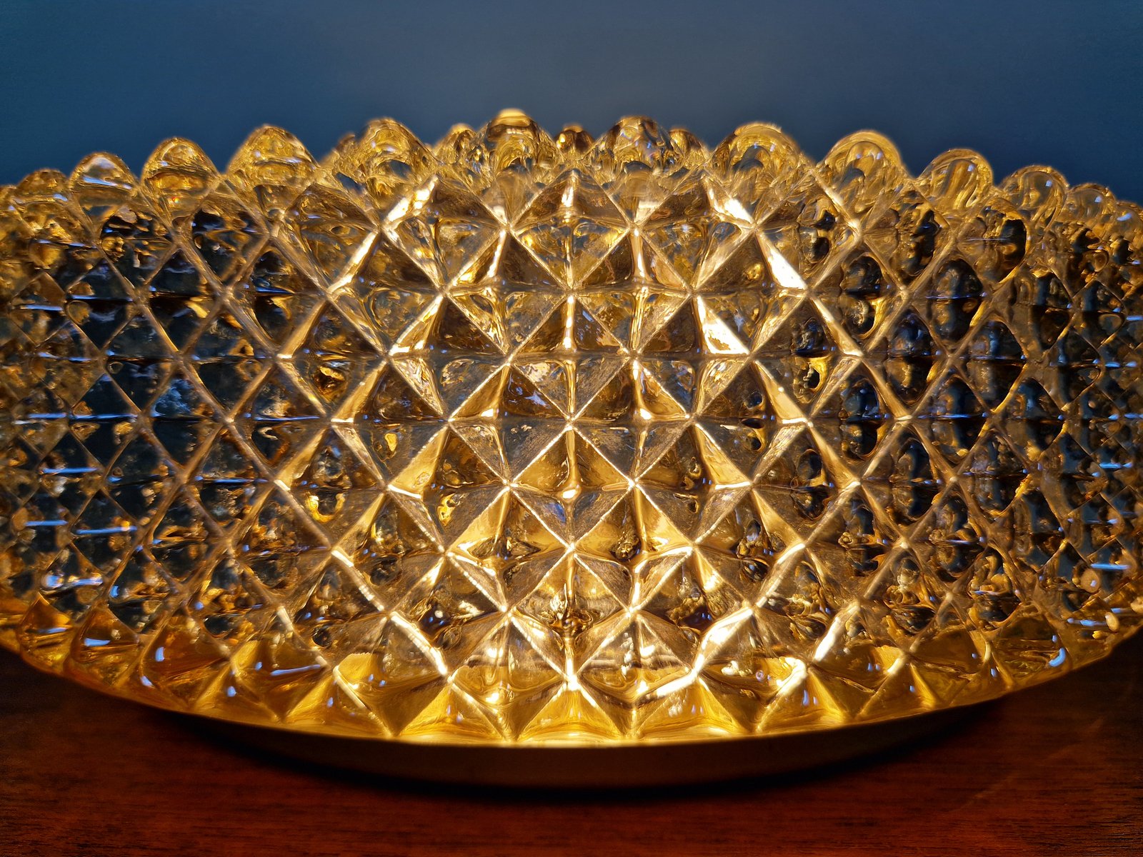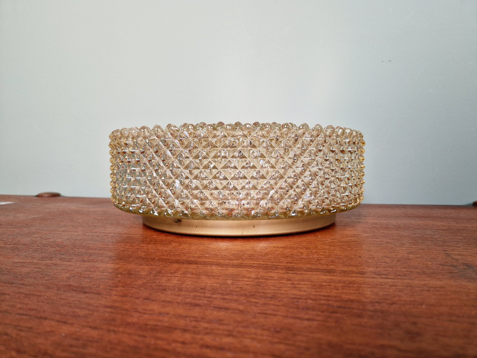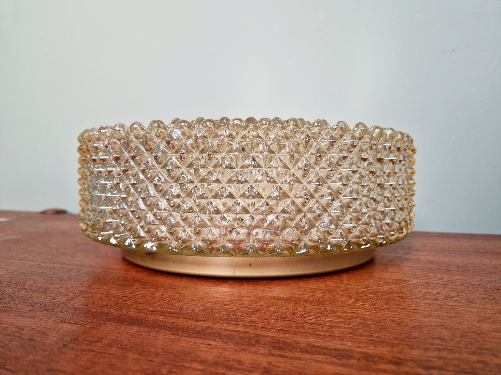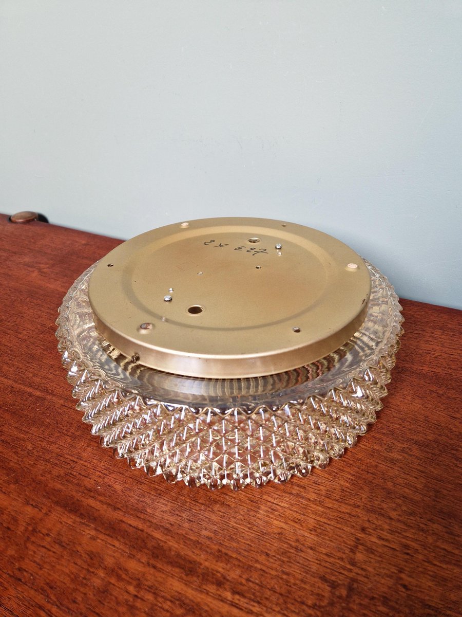 Amber Crystal and Gilt Metal Ceiling Light from Glashütte Limburg, 1970