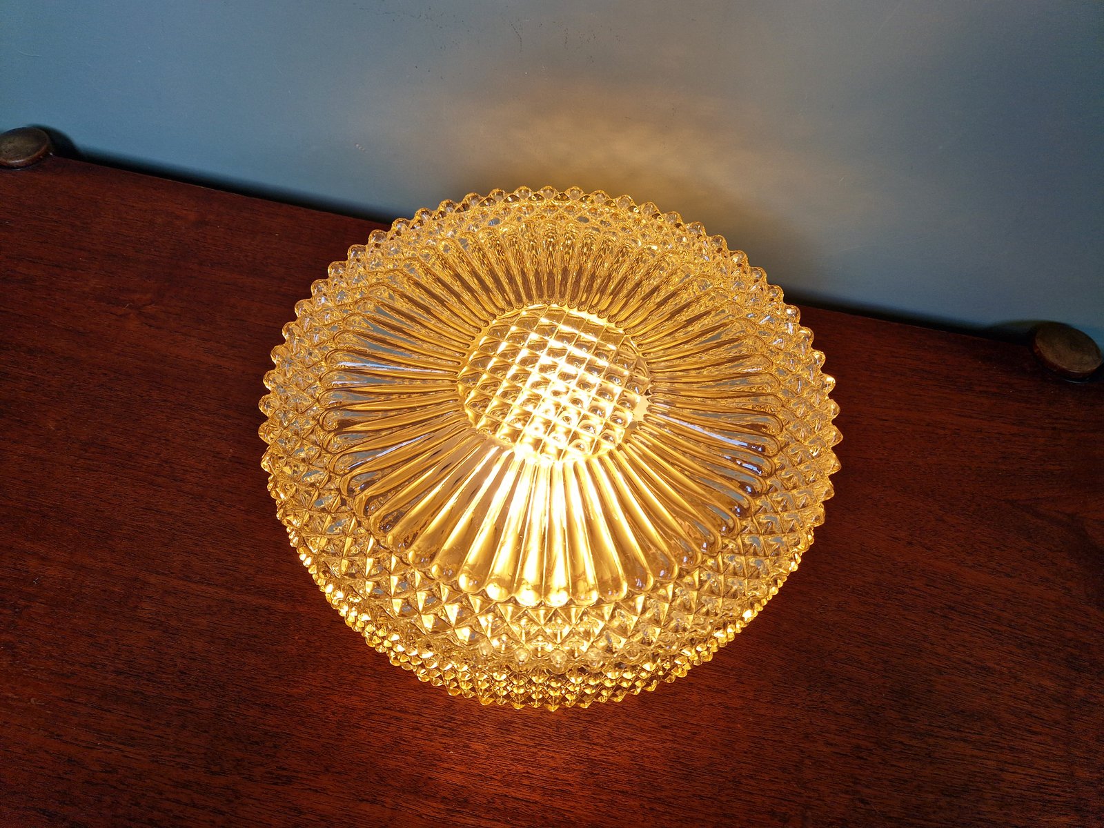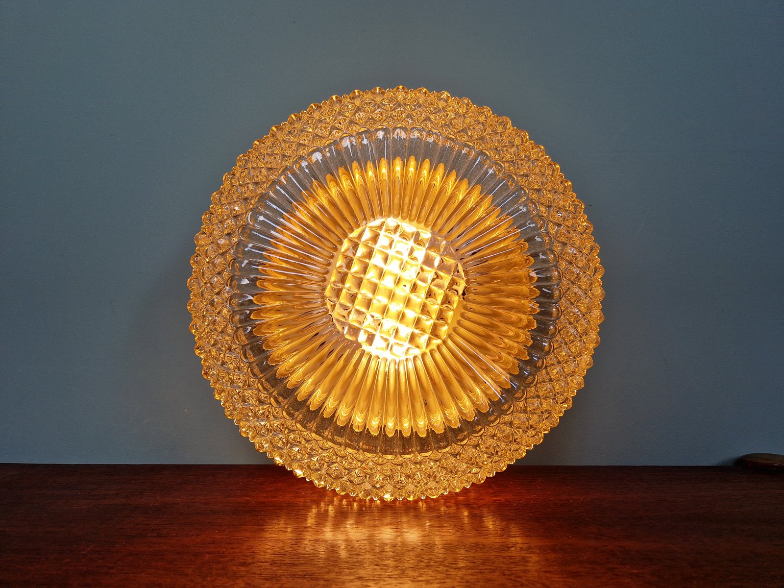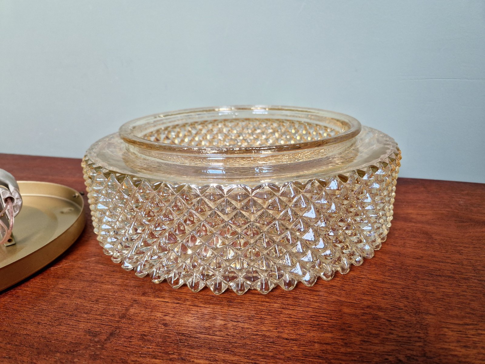 Amber Crystal and Gilt Metal Ceiling Light from Glashütte Limburg, 1970