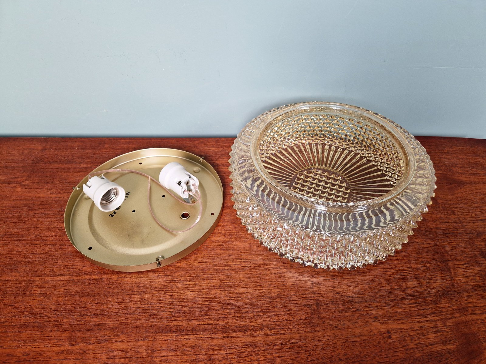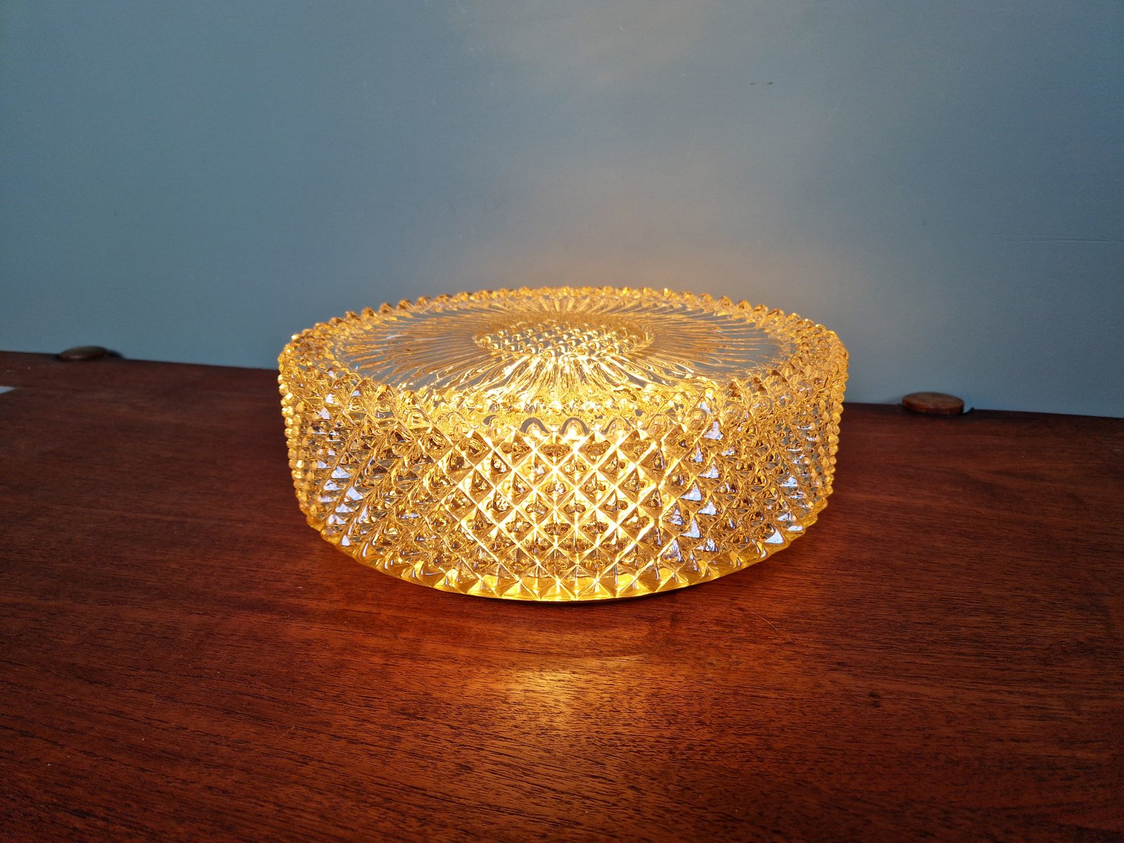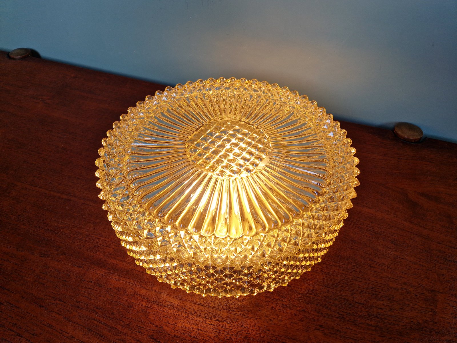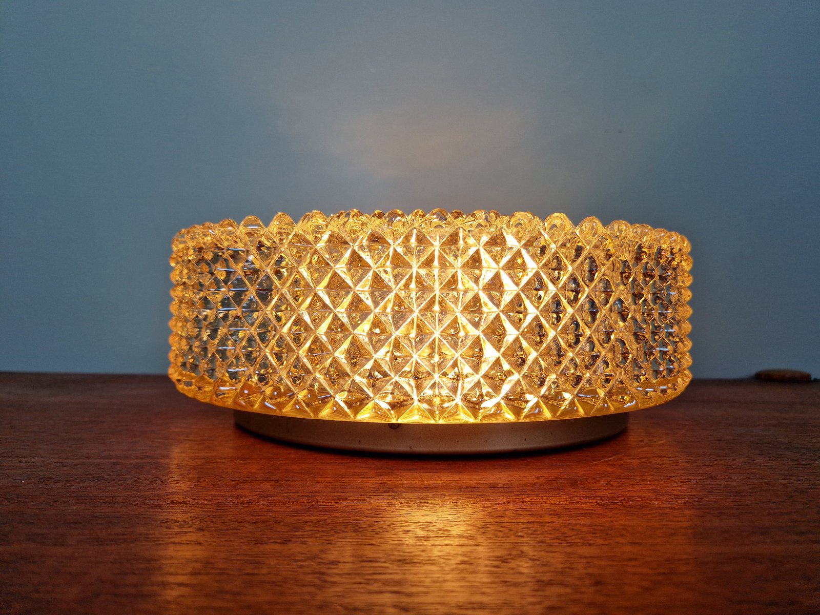 Amber Crystal and Gilt Metal Ceiling Light from Glashütte Limburg, 1970