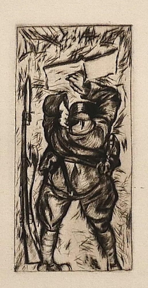Anselmo Bucci, Reading Soldier, Etching on Paper, 1918