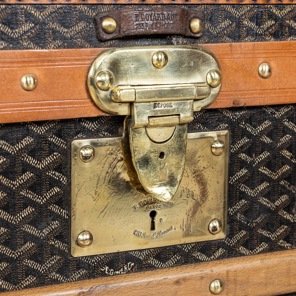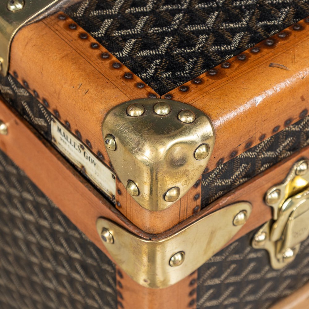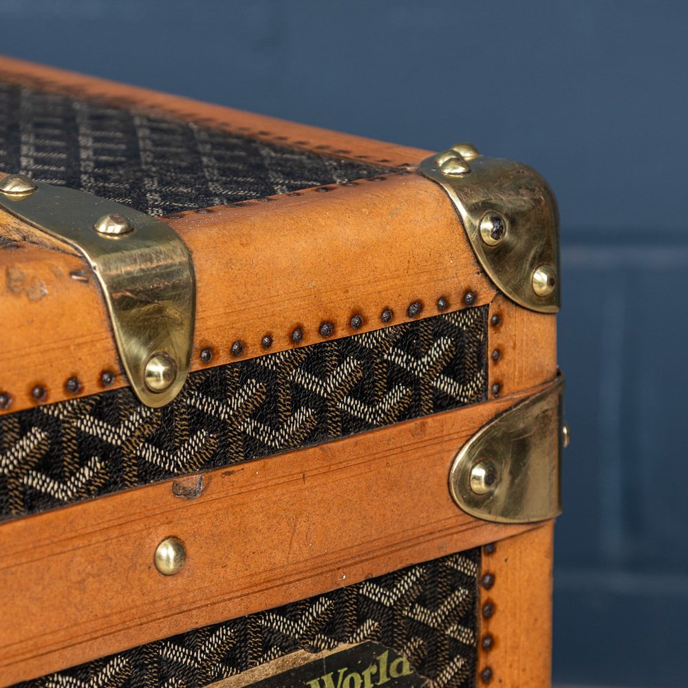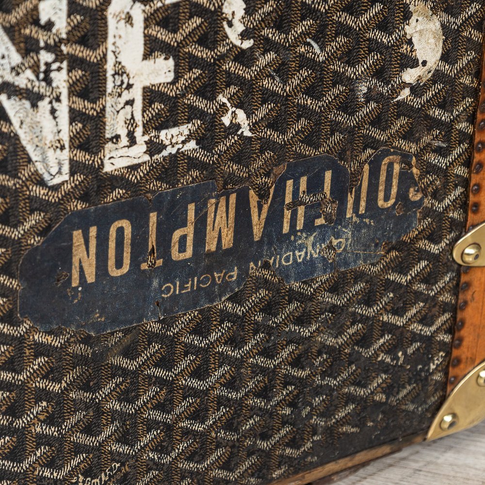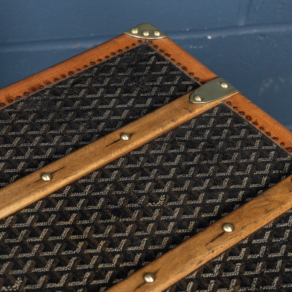 Antique 20th Century Courier Trunk in Chevron Canvas from Goyard, France, 1900s