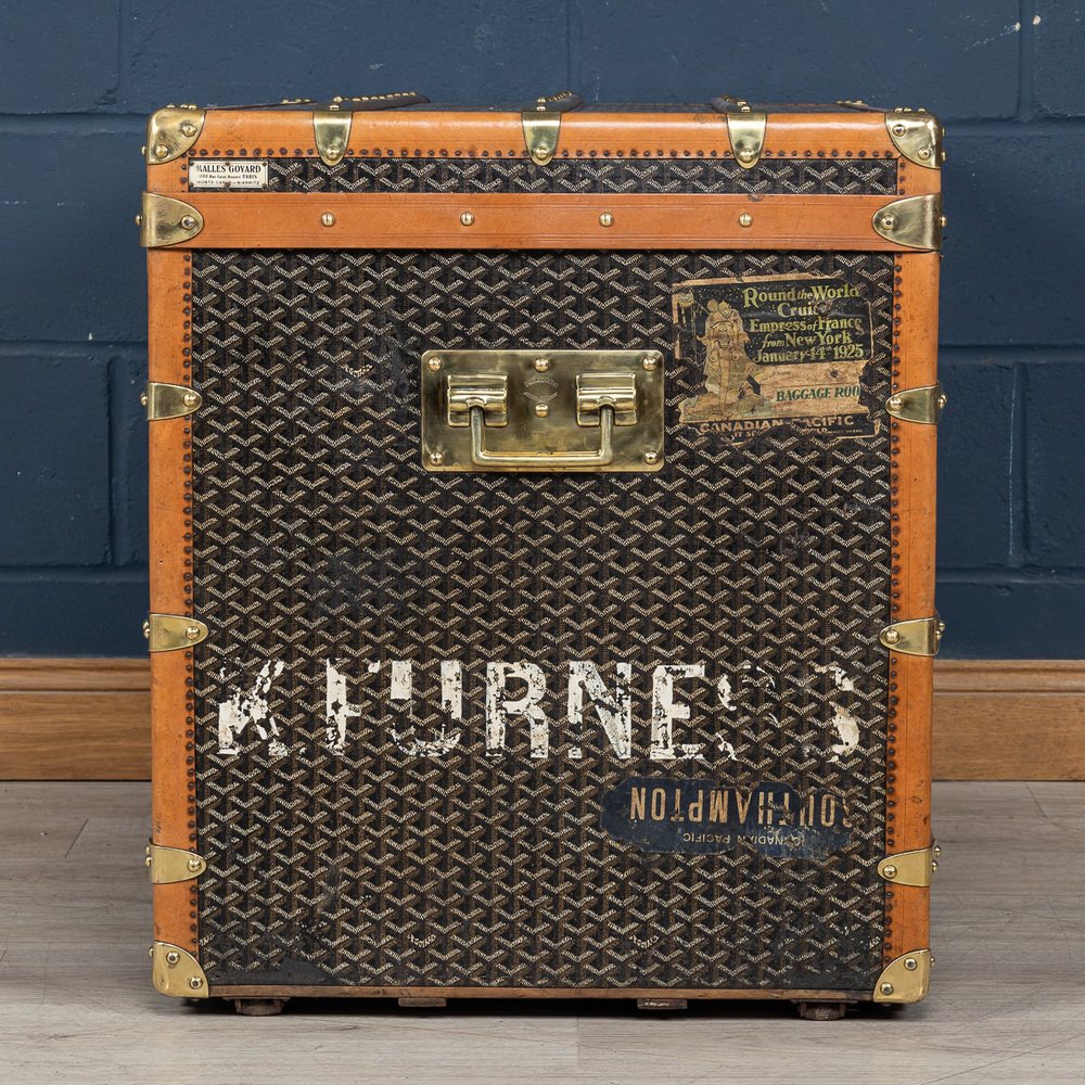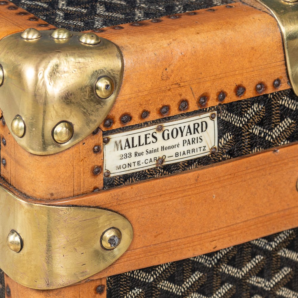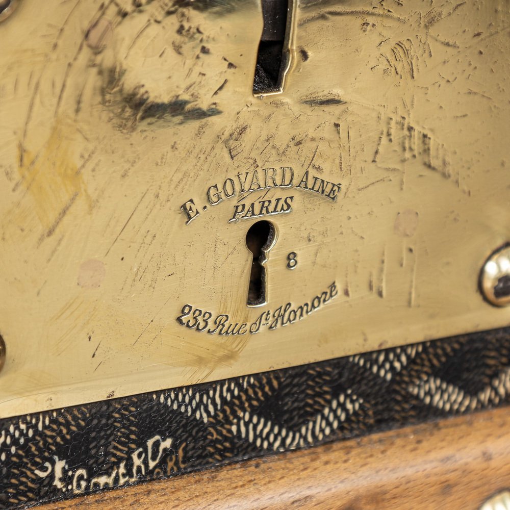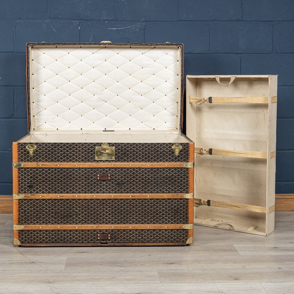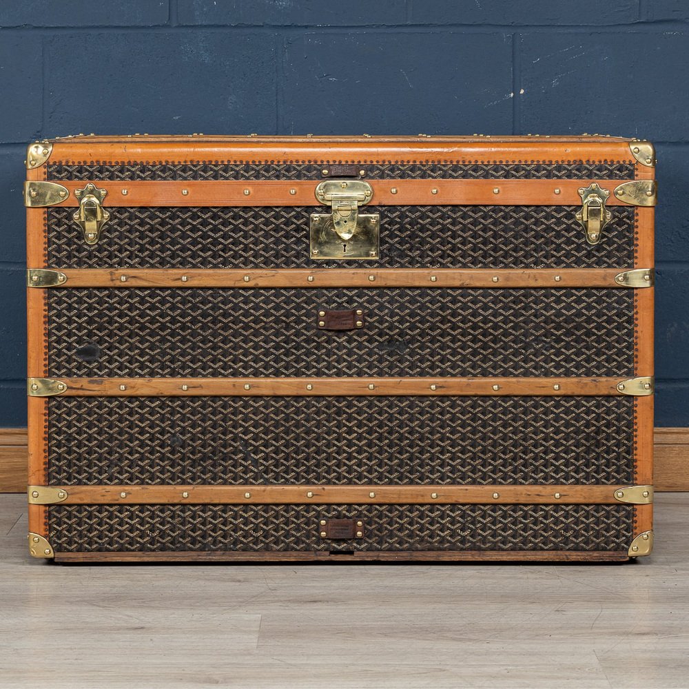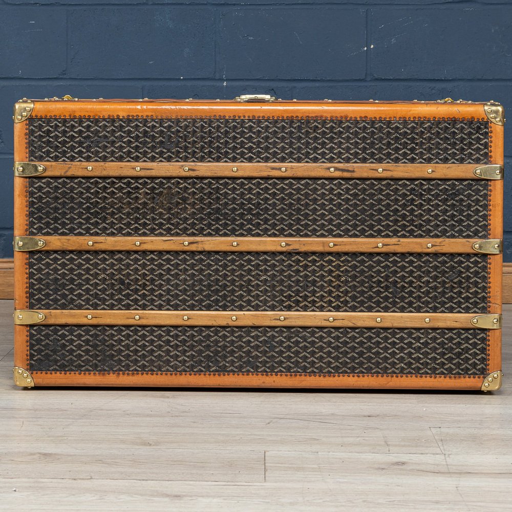 Antique 20th Century Courier Trunk in Chevron Canvas from Goyard, France, 1900s
