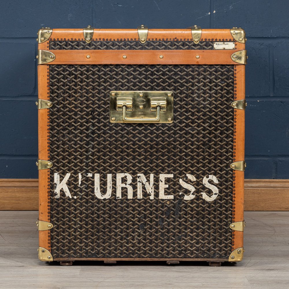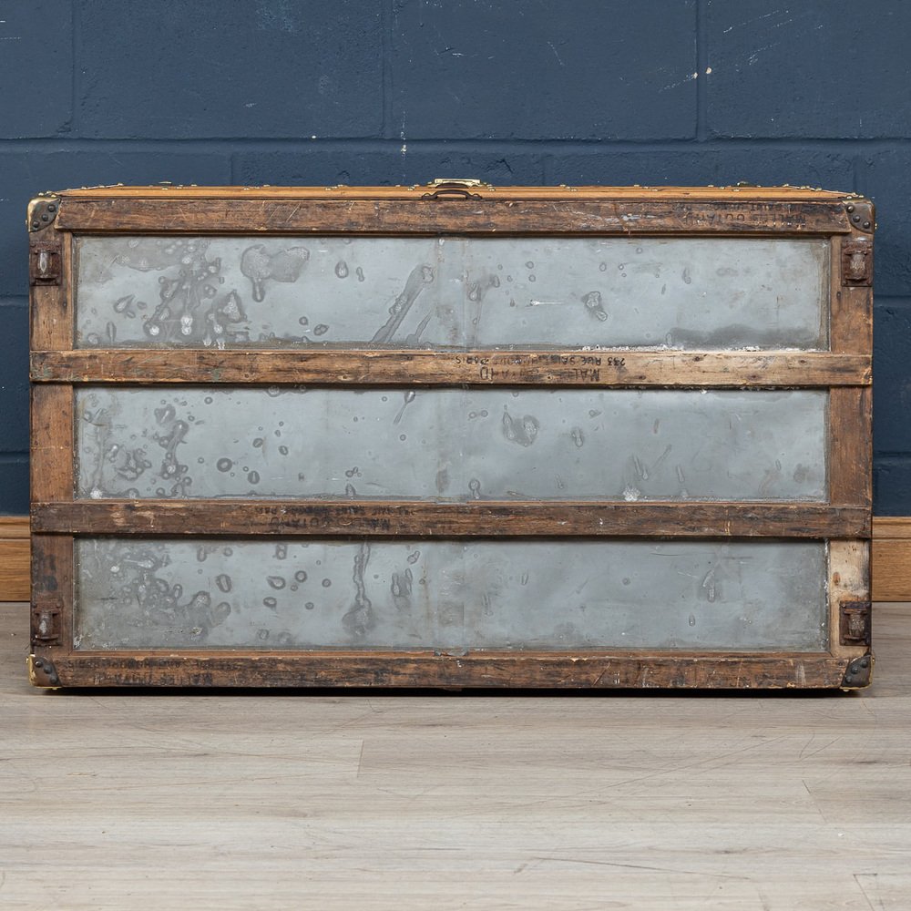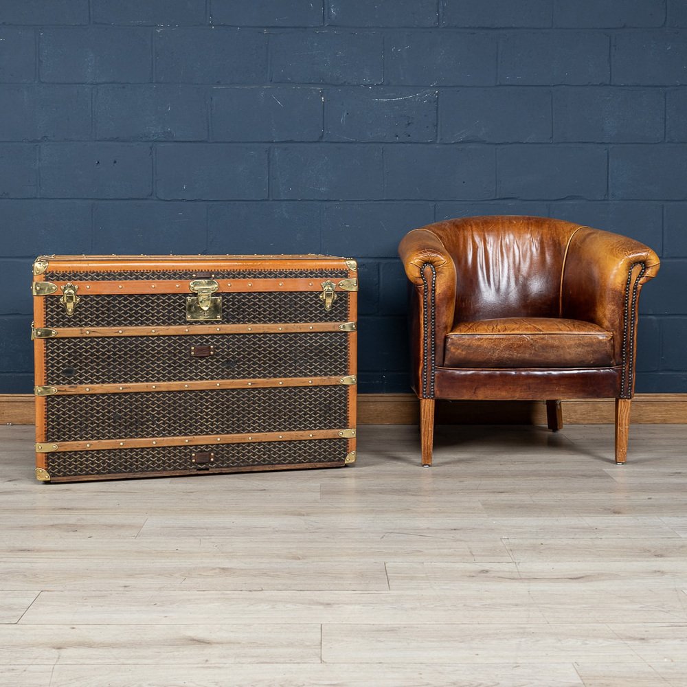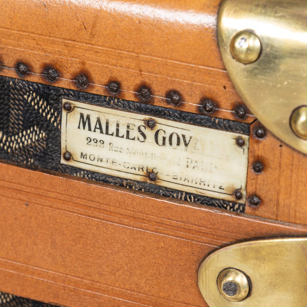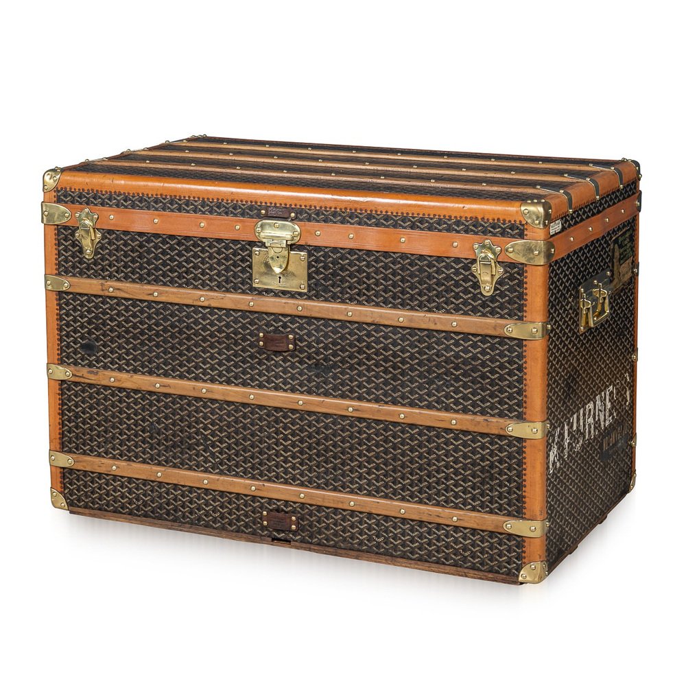 Antique 20th Century Courier Trunk in Chevron Canvas from Goyard, France, 1900s