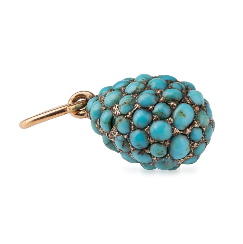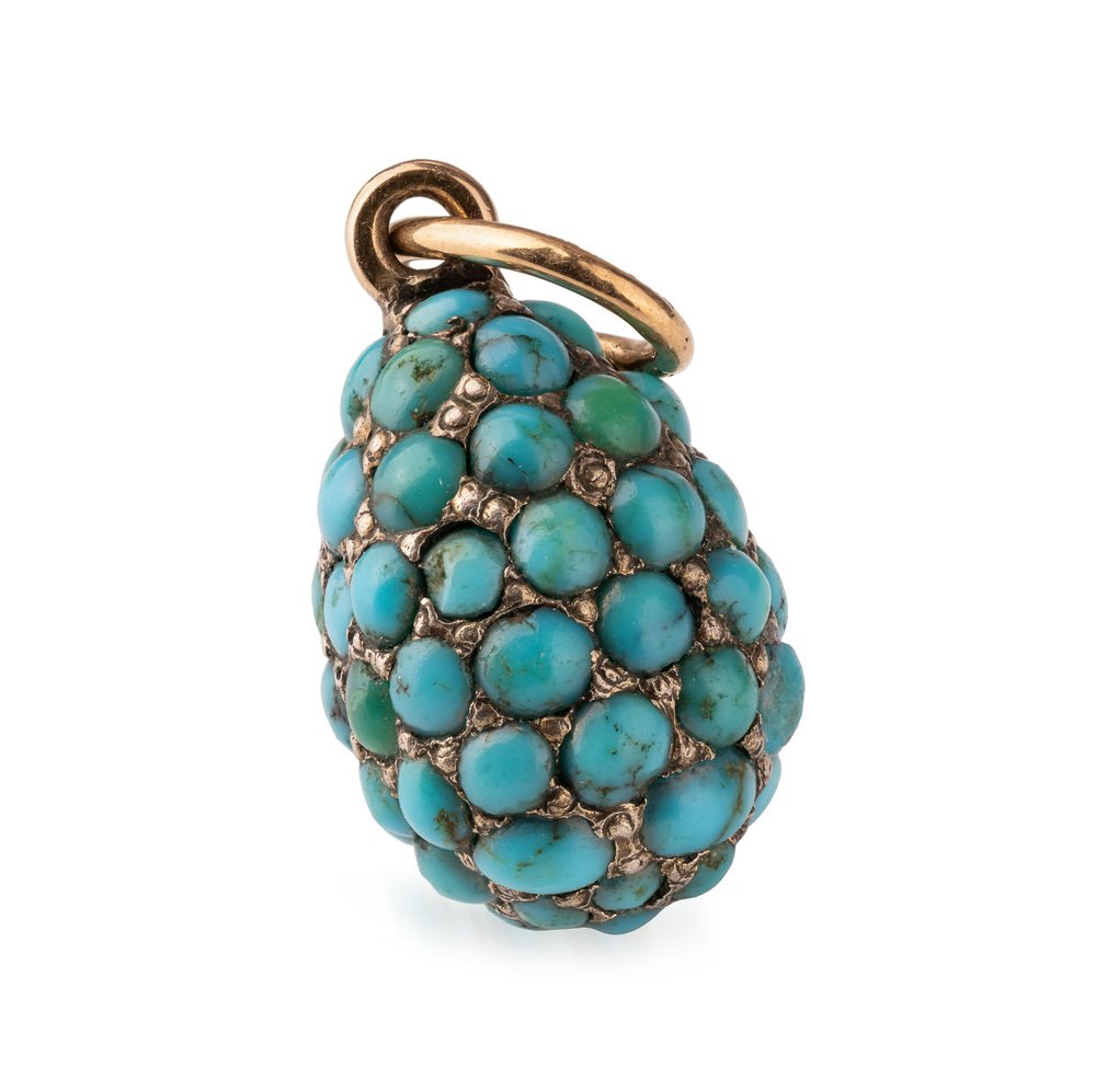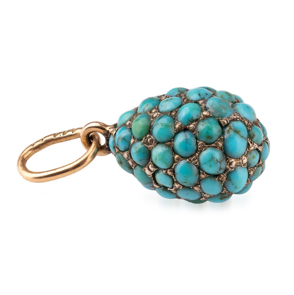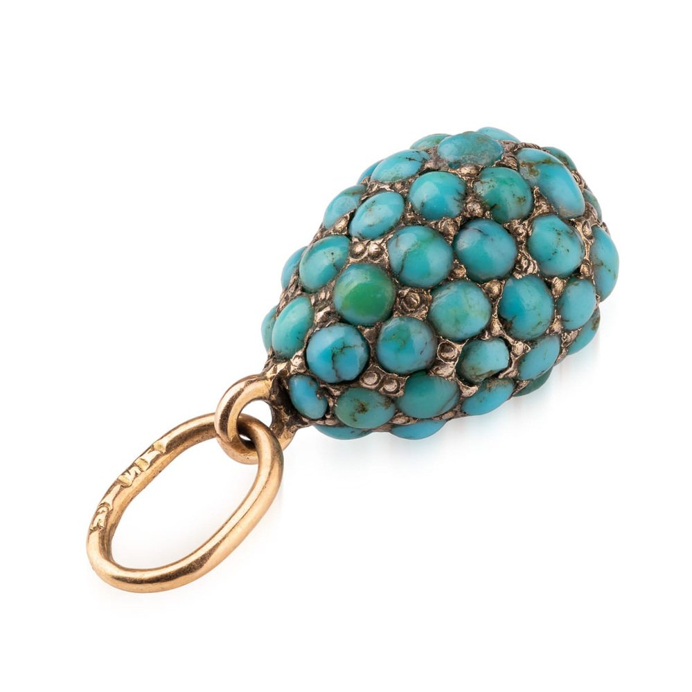 Antique 20th Century Imperial Russian 14k Gold & Turquoise Egg Pendant, 1900s