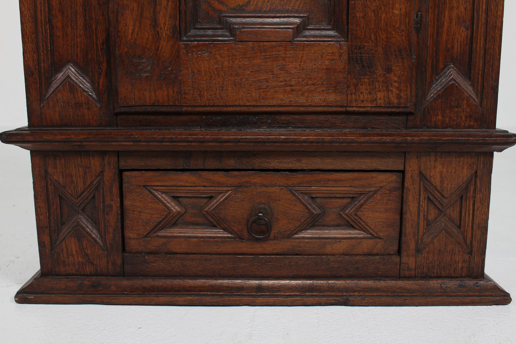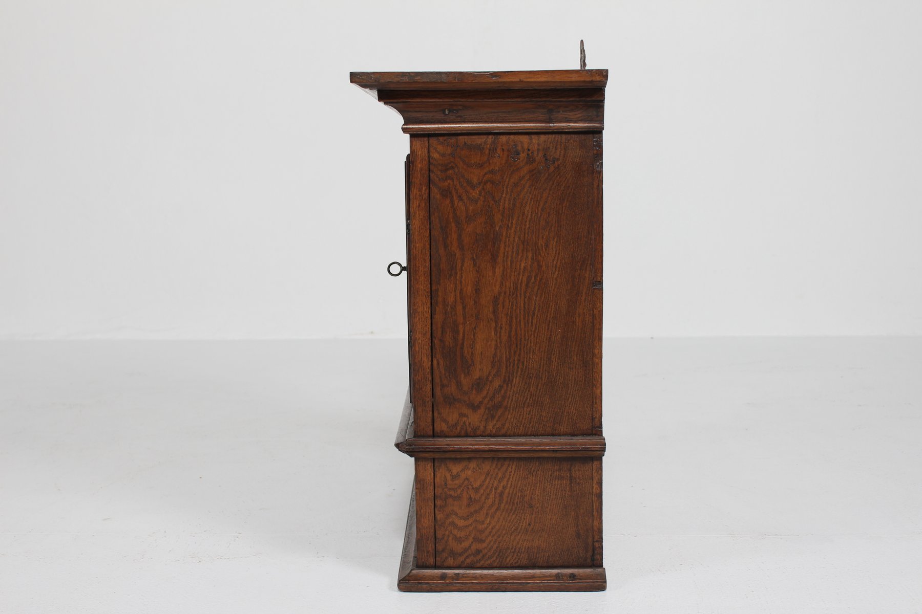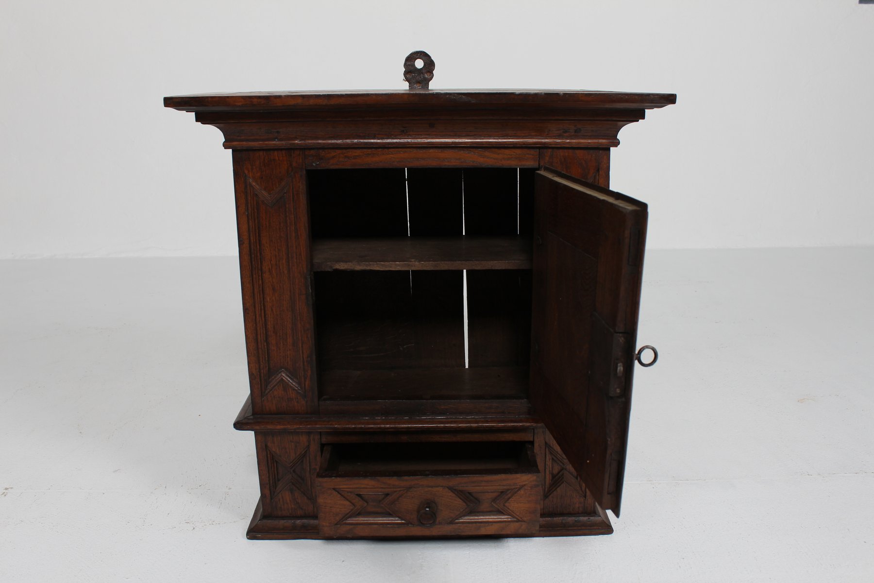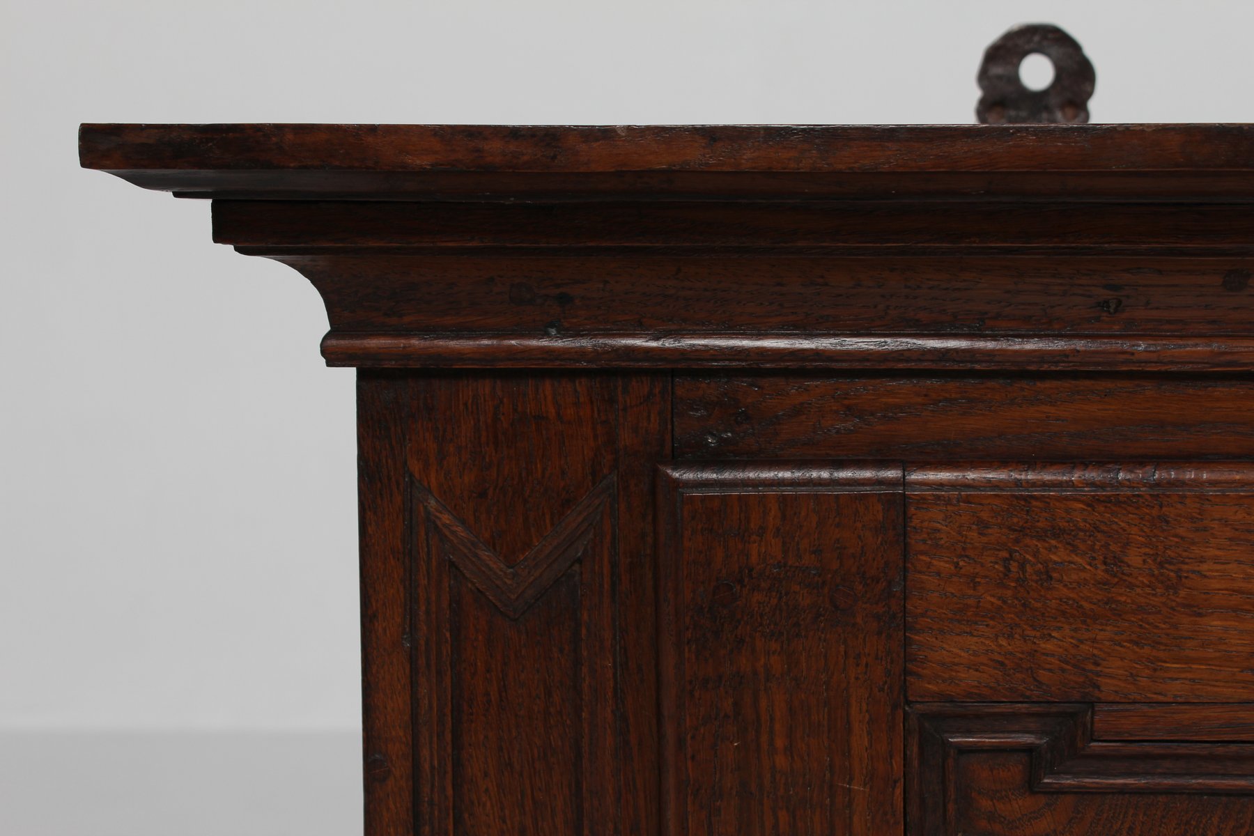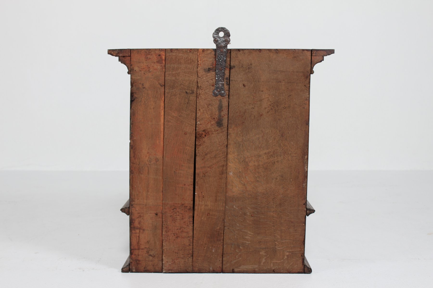 Antique Baroque Style Hanging Cabinet in Dark Oak with Wood Carvings, 1800