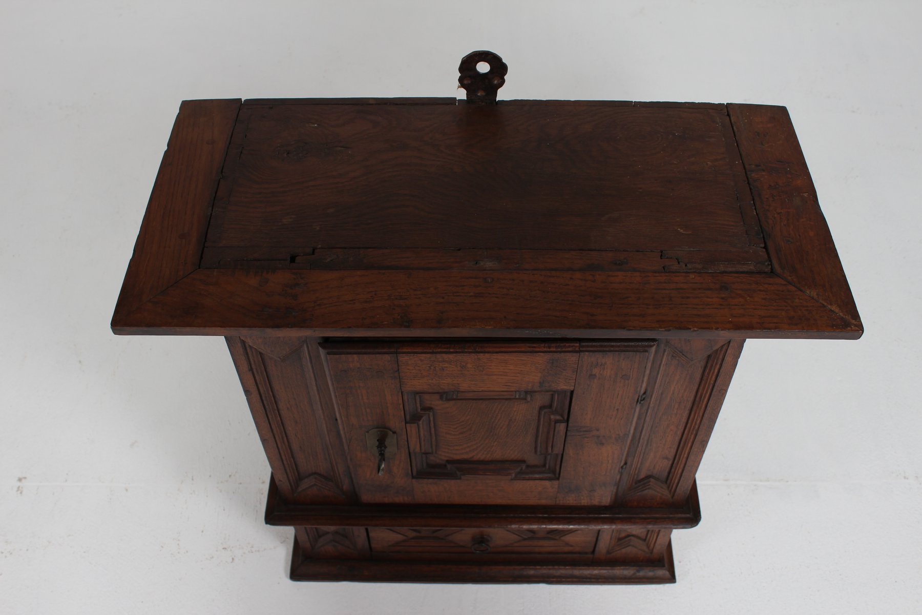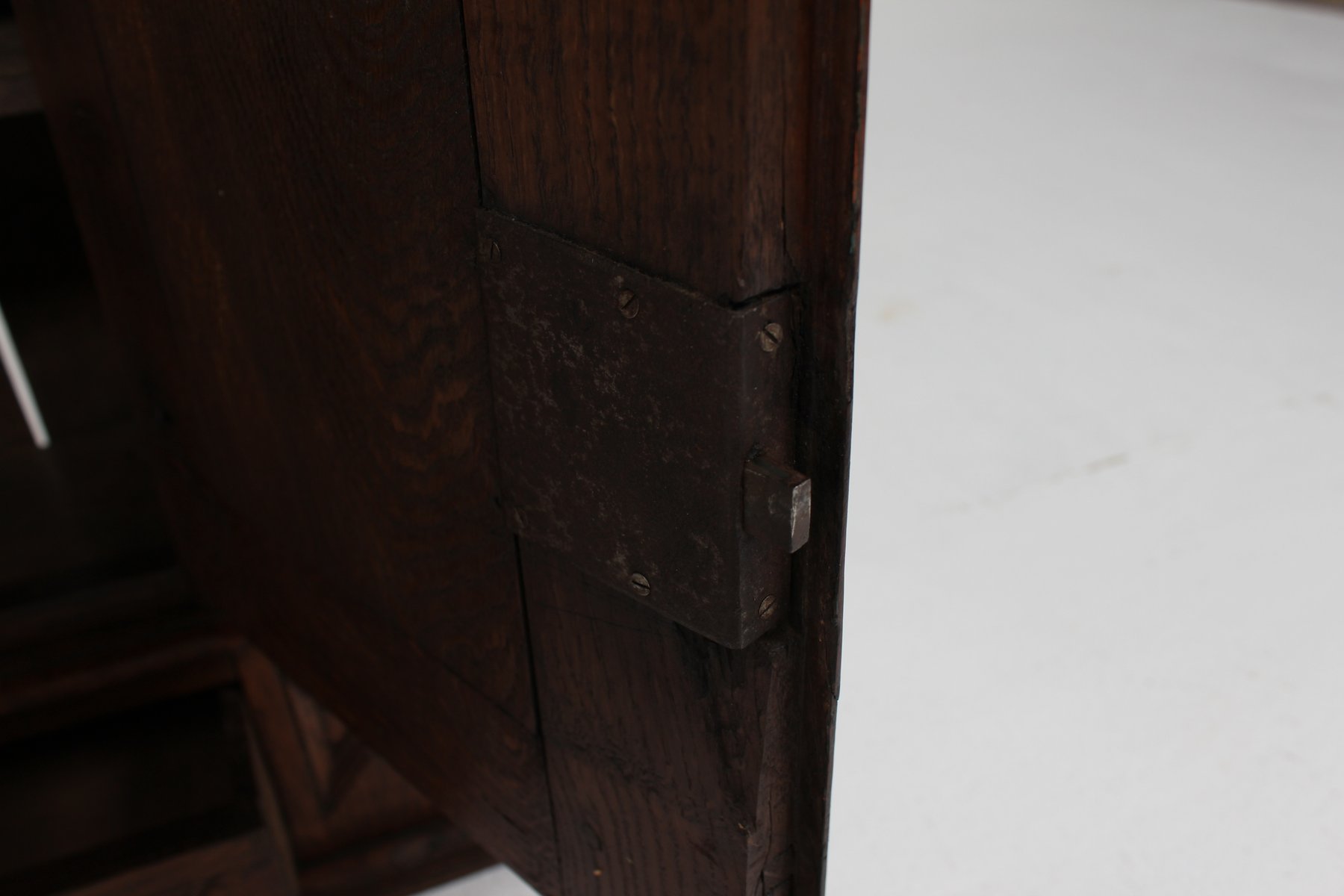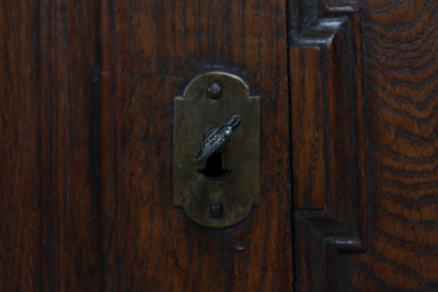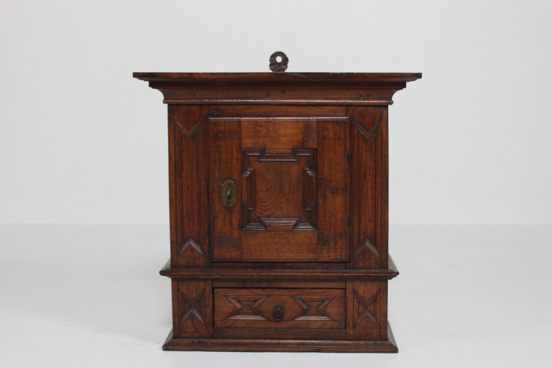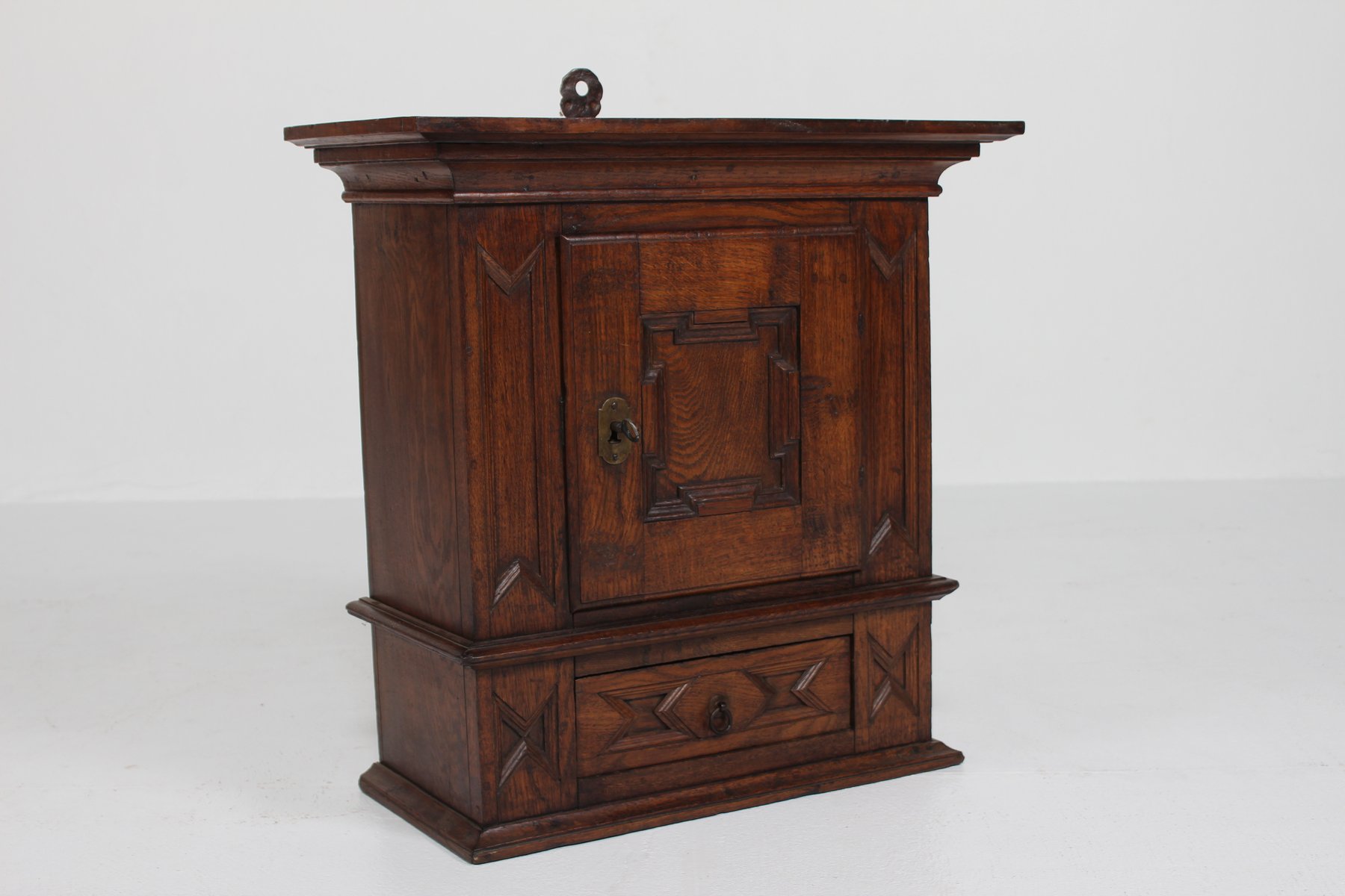 Antique Baroque Style Hanging Cabinet in Dark Oak with Wood Carvings, 1800