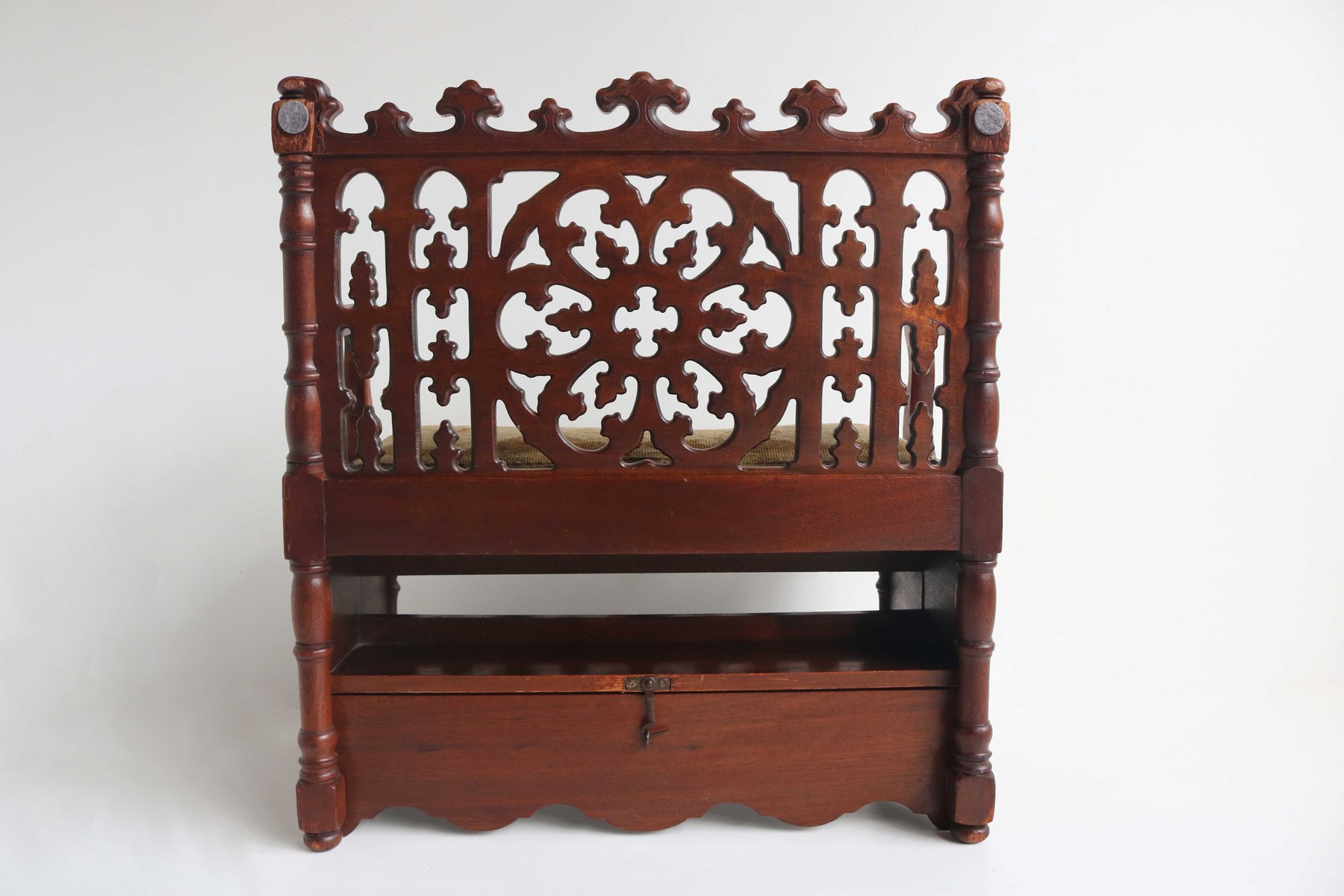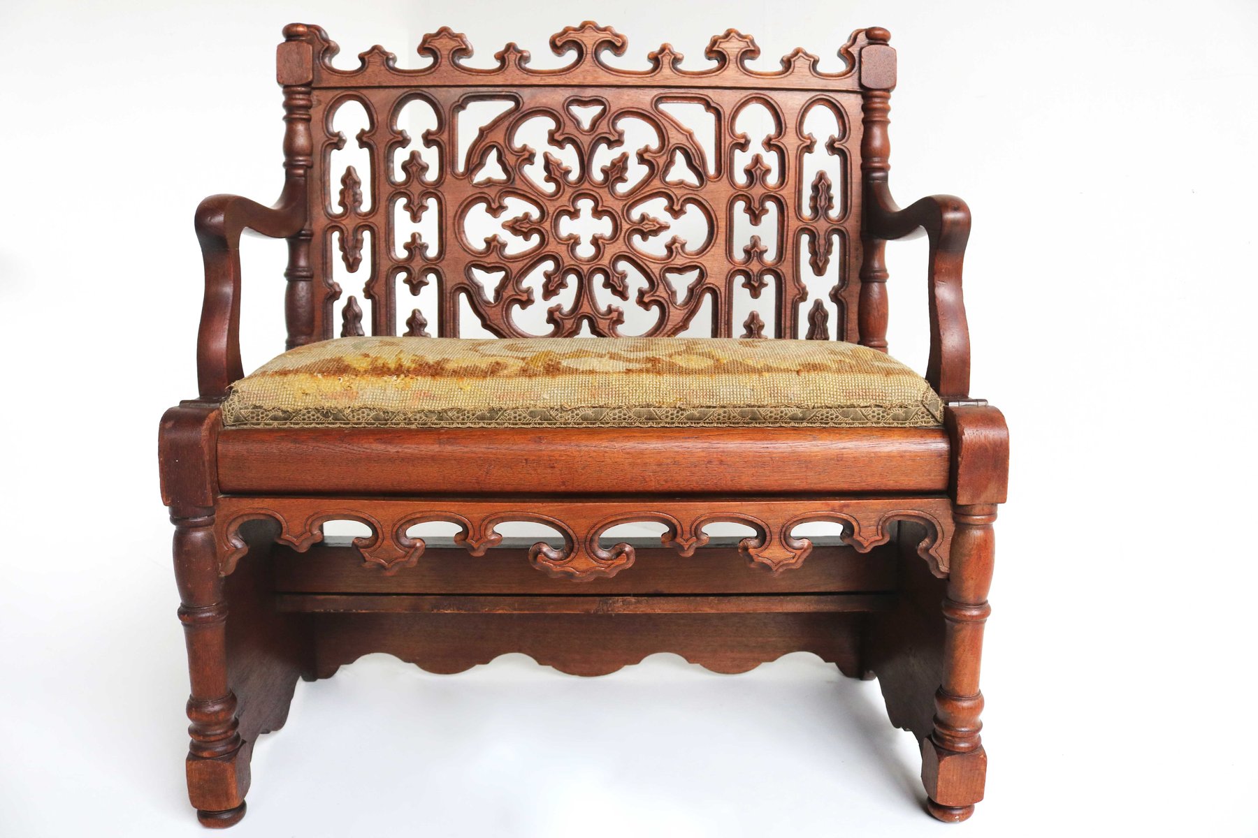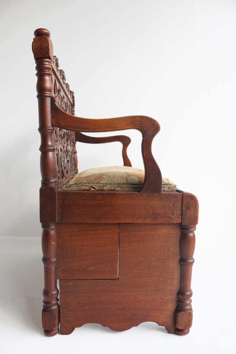 Antique French Gothic Revival Wood Hall Bench, 1880s