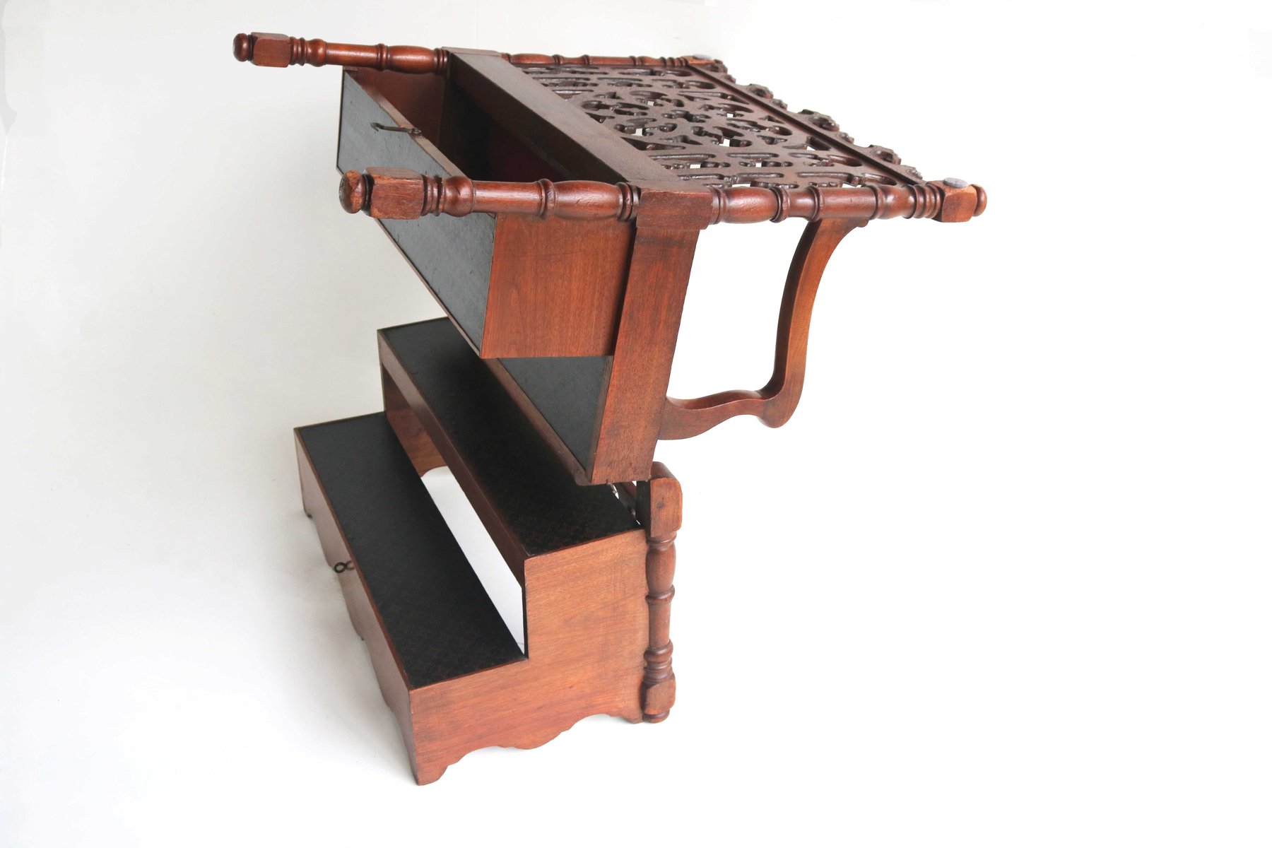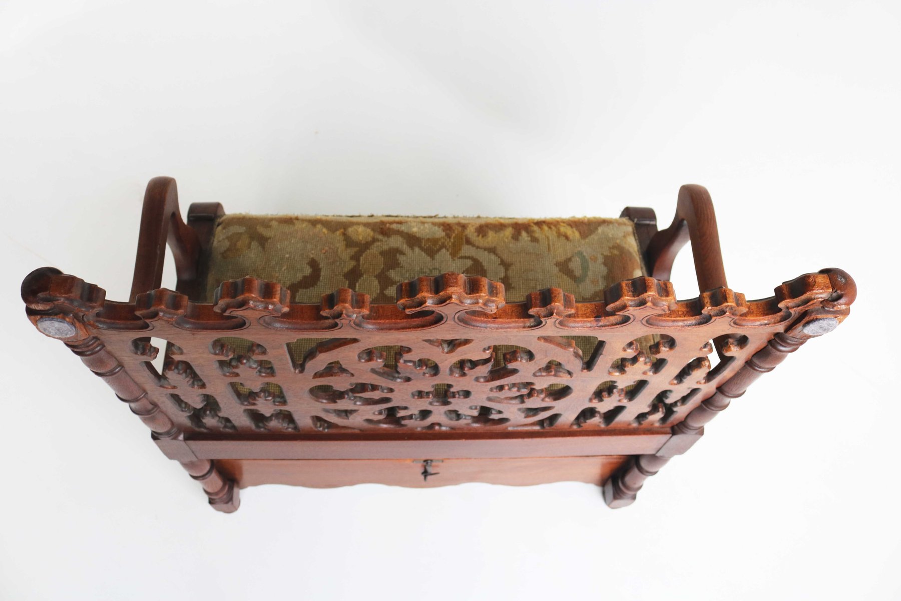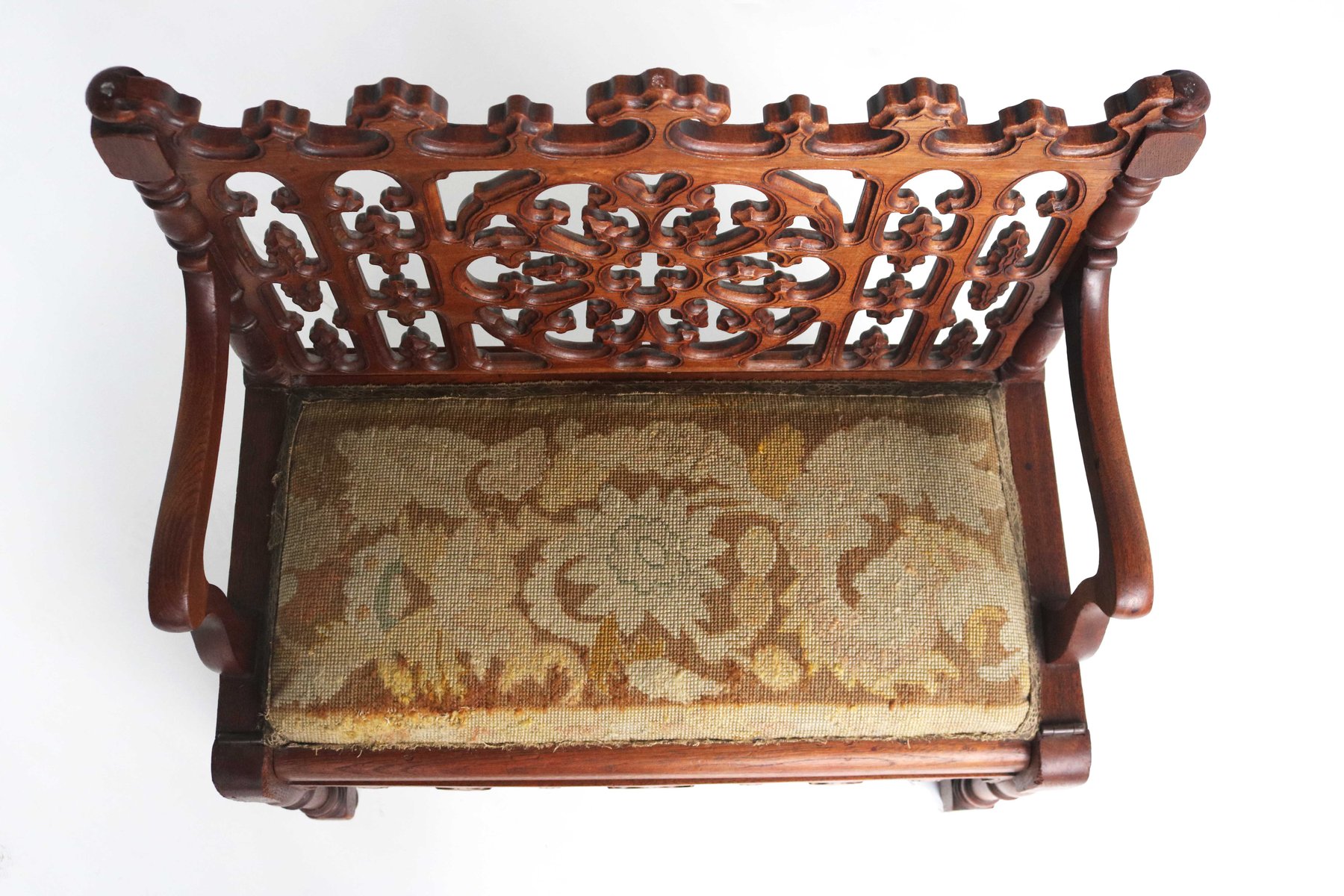 Antique French Gothic Revival Wood Hall Bench, 1880s