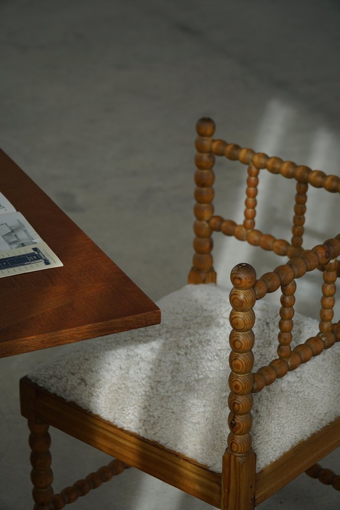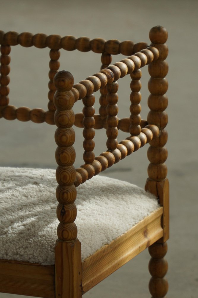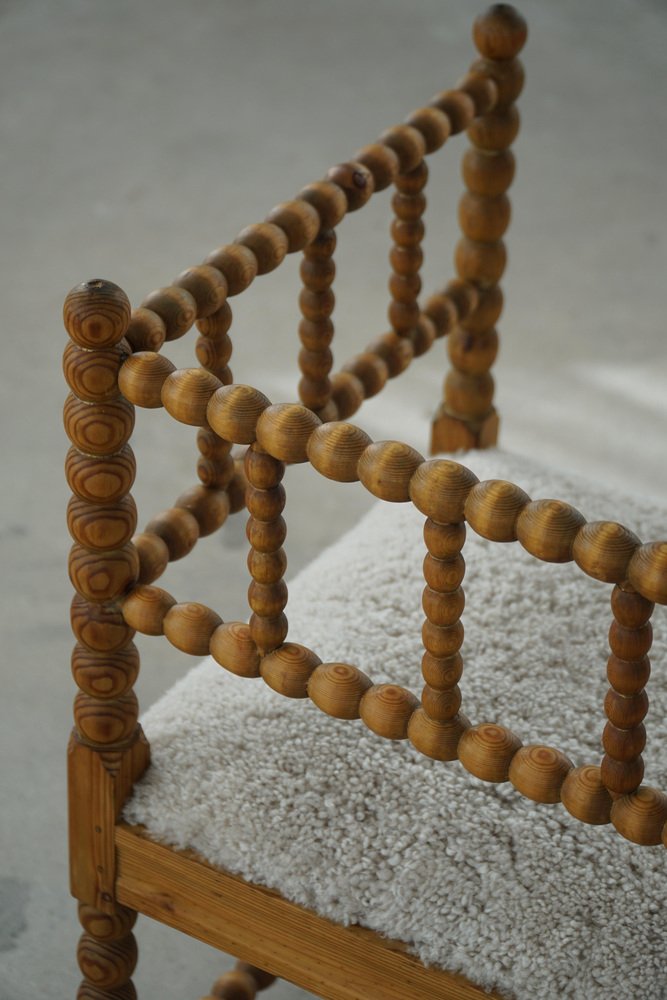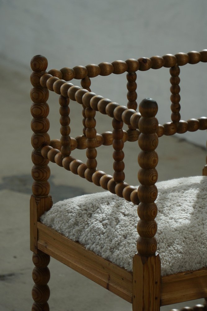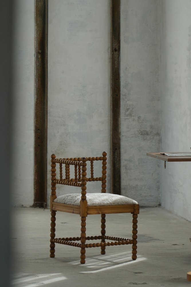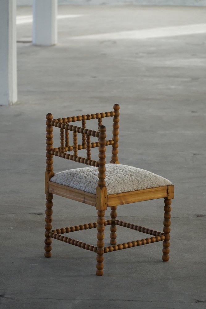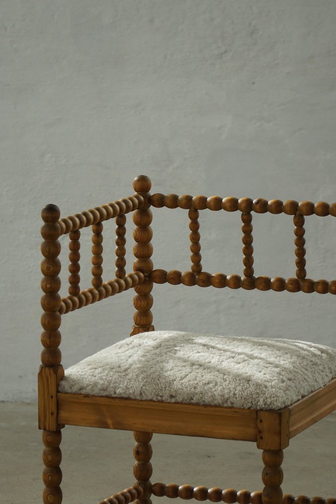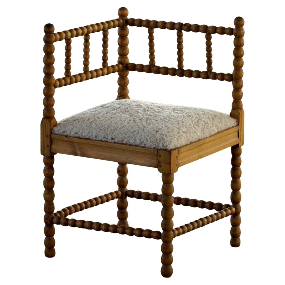 Antique French Hand-Crafted Bobbin Corner Chair with Lambswool, 1920s
