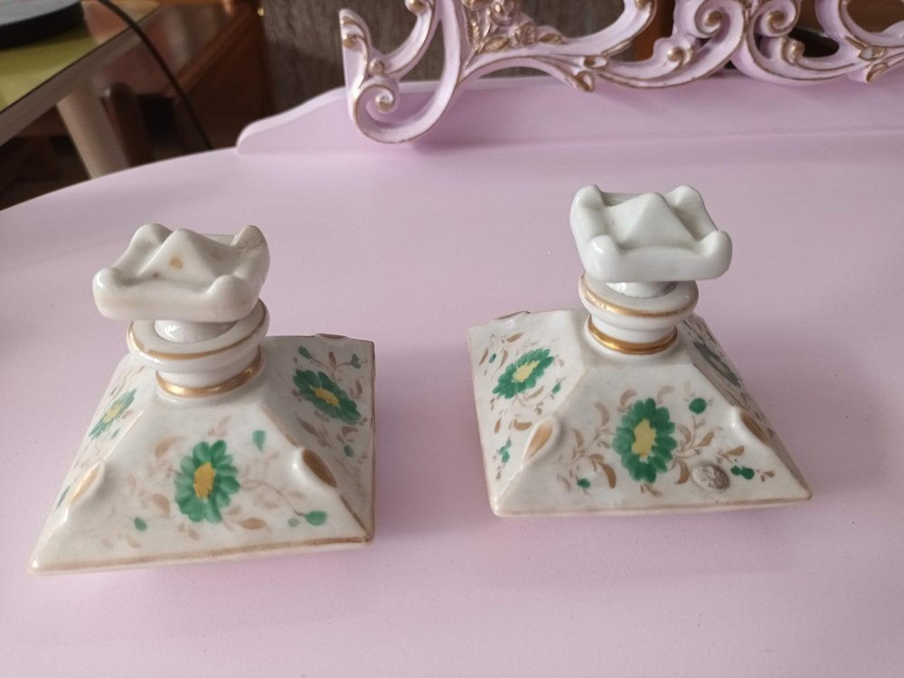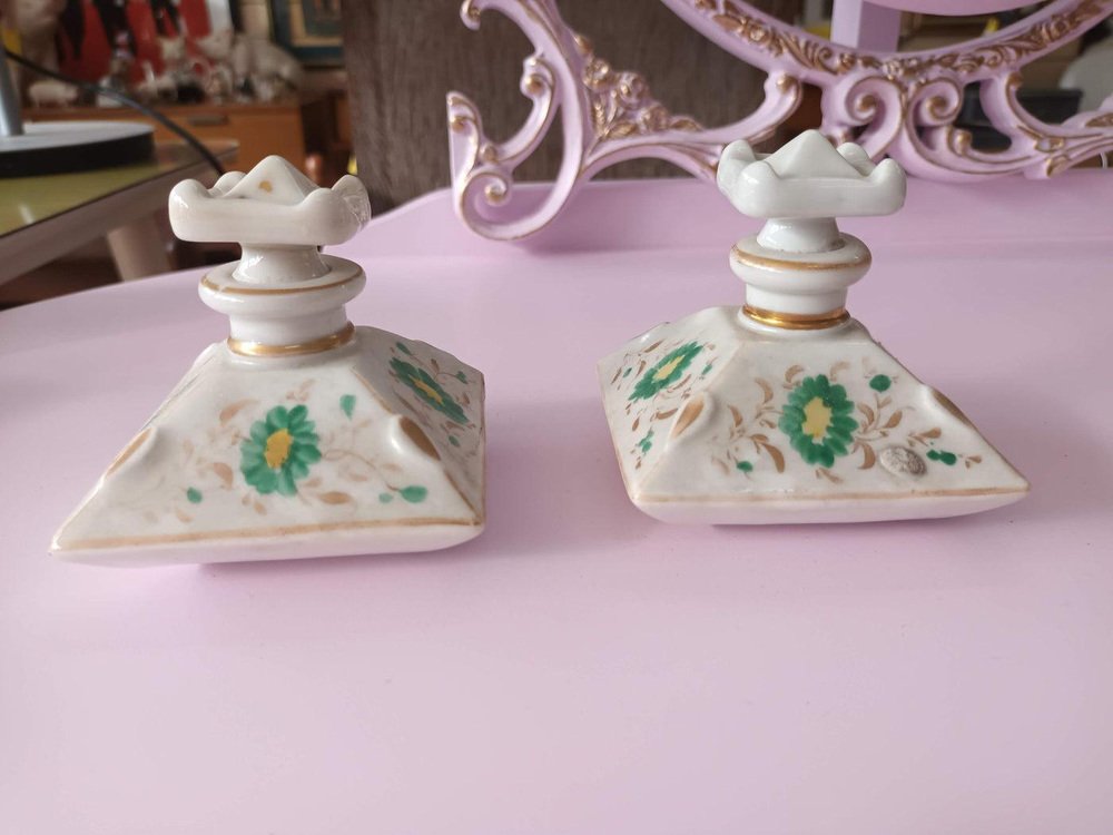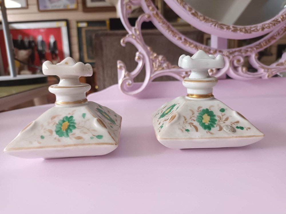 Antique French Hand Painted Porcelain Perfume Bottles, Set of 2