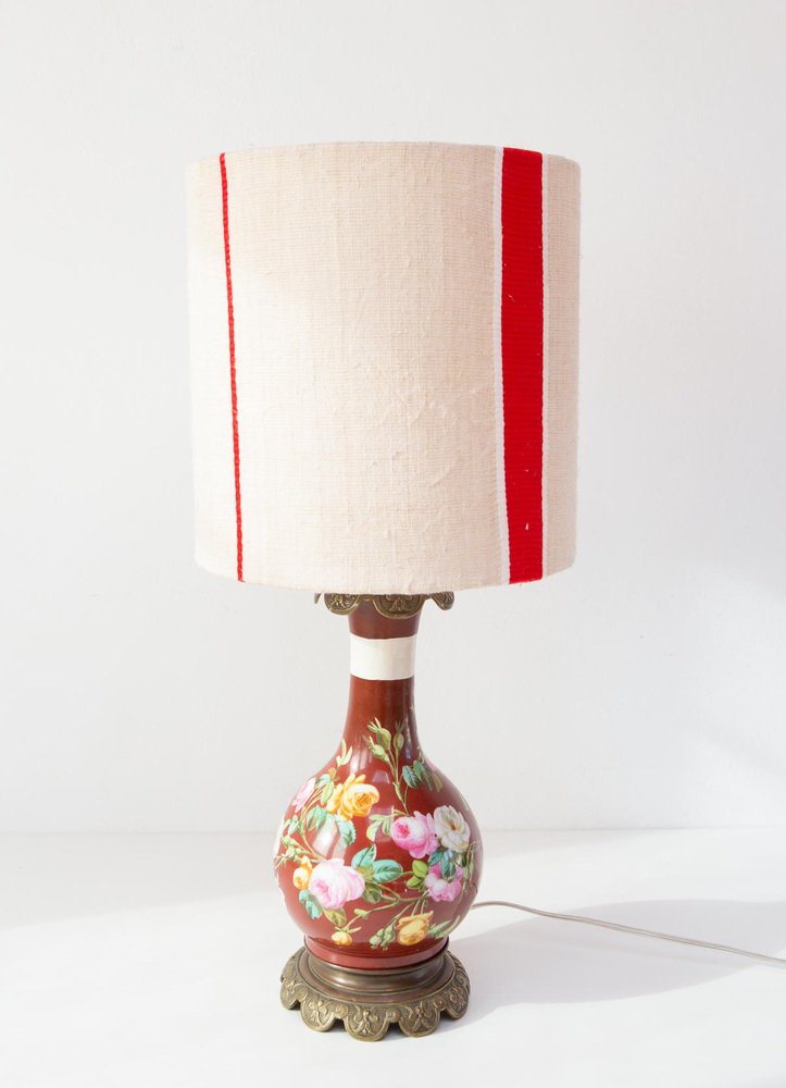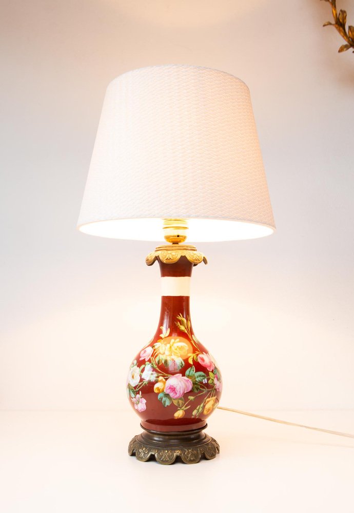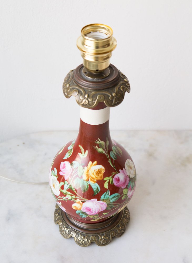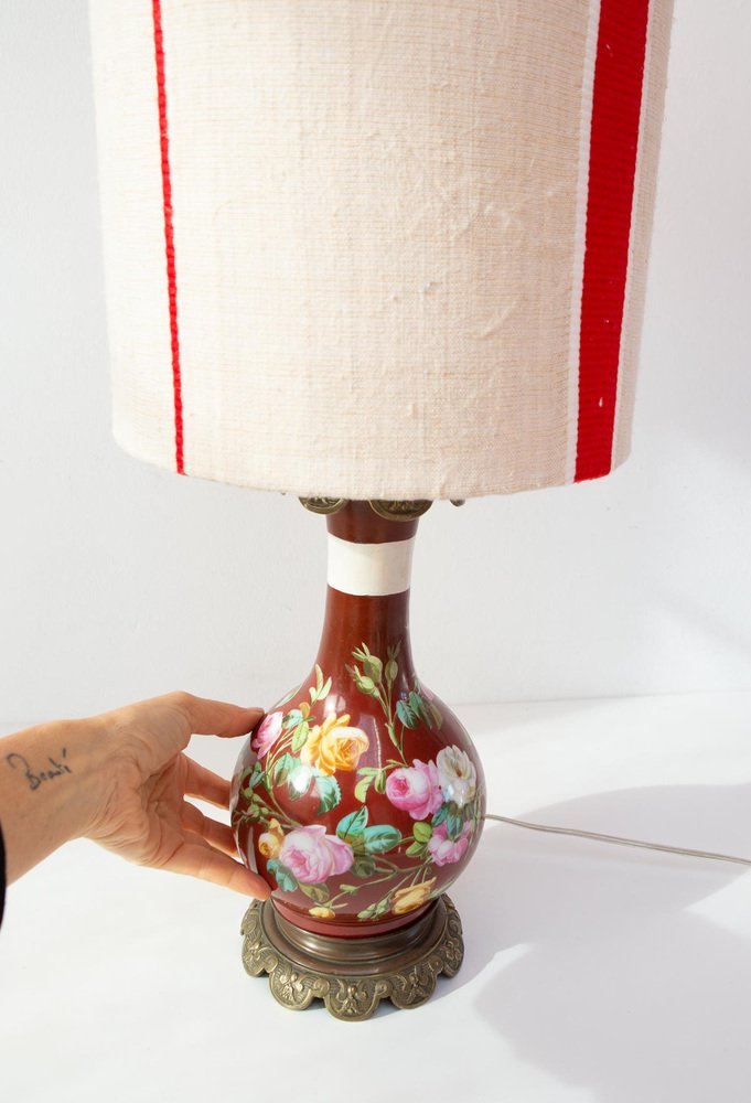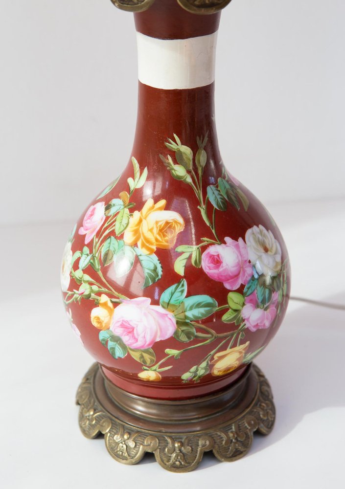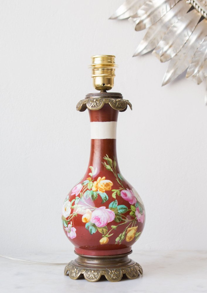 Antique French Handpainted Bouquet Table Lamp from Befos, 1900