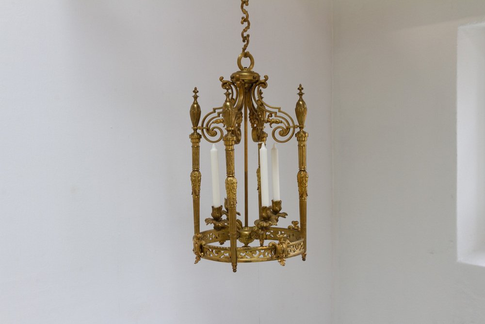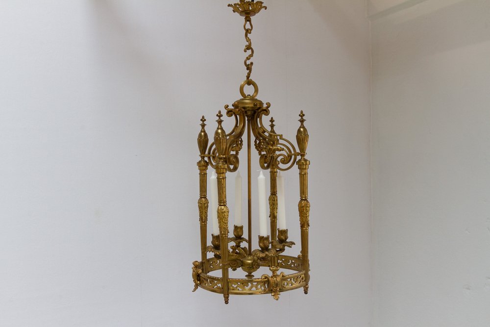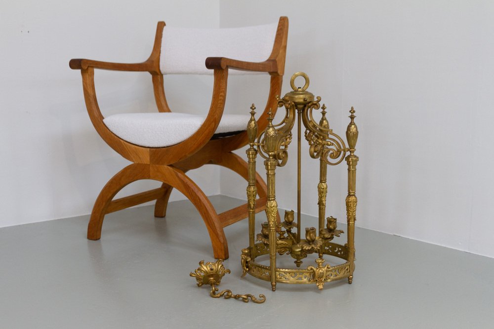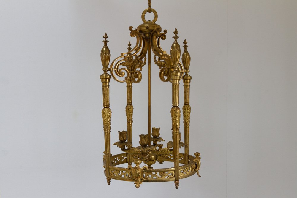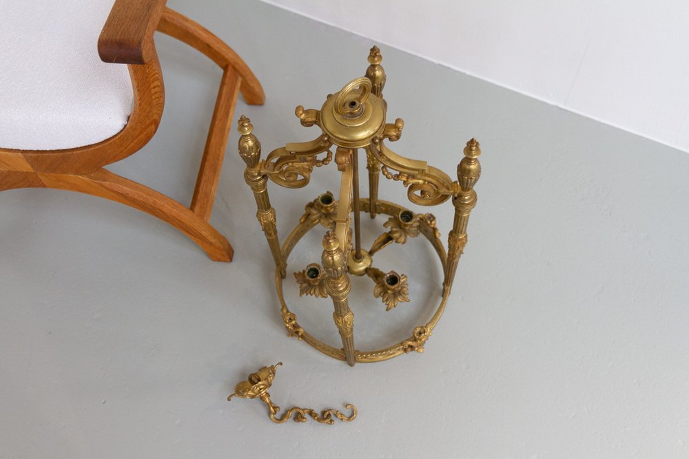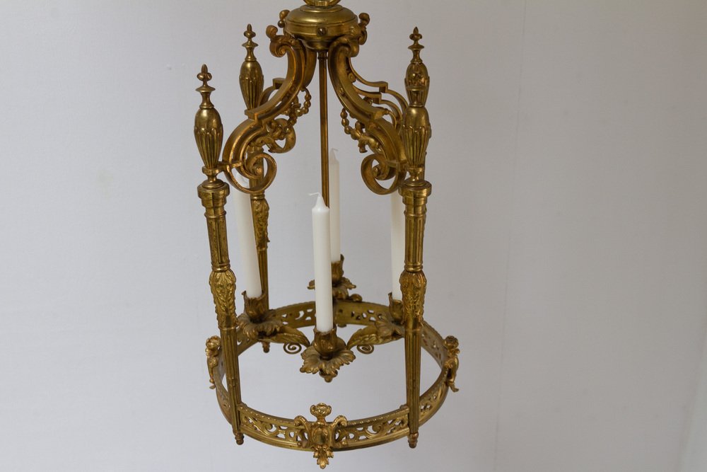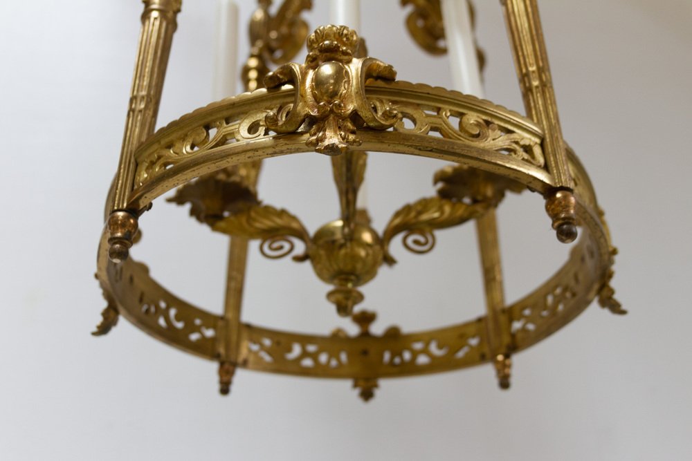Antique French Napoleon III Gilded Bronze Chandelier, 1850s