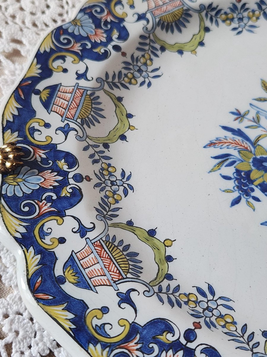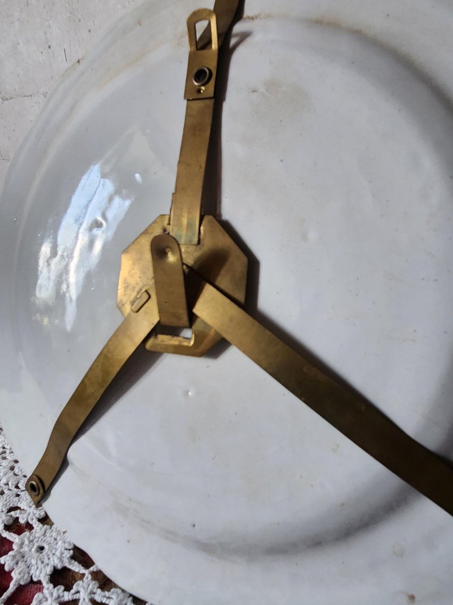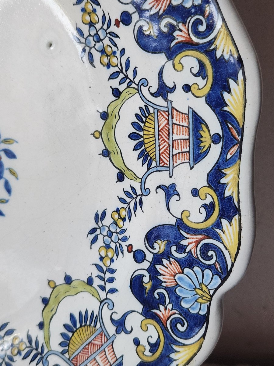 Antique French Quimper Plate with Cherub and Floral Decor and Lion Claw Brass Hanger, 19th Century