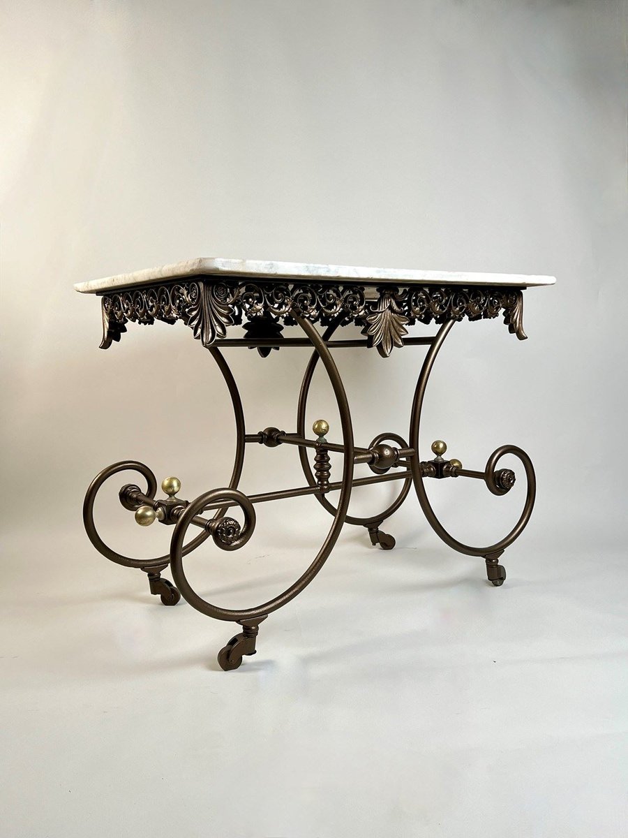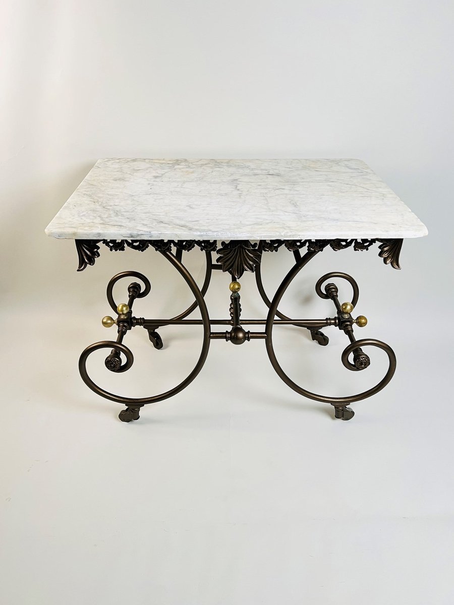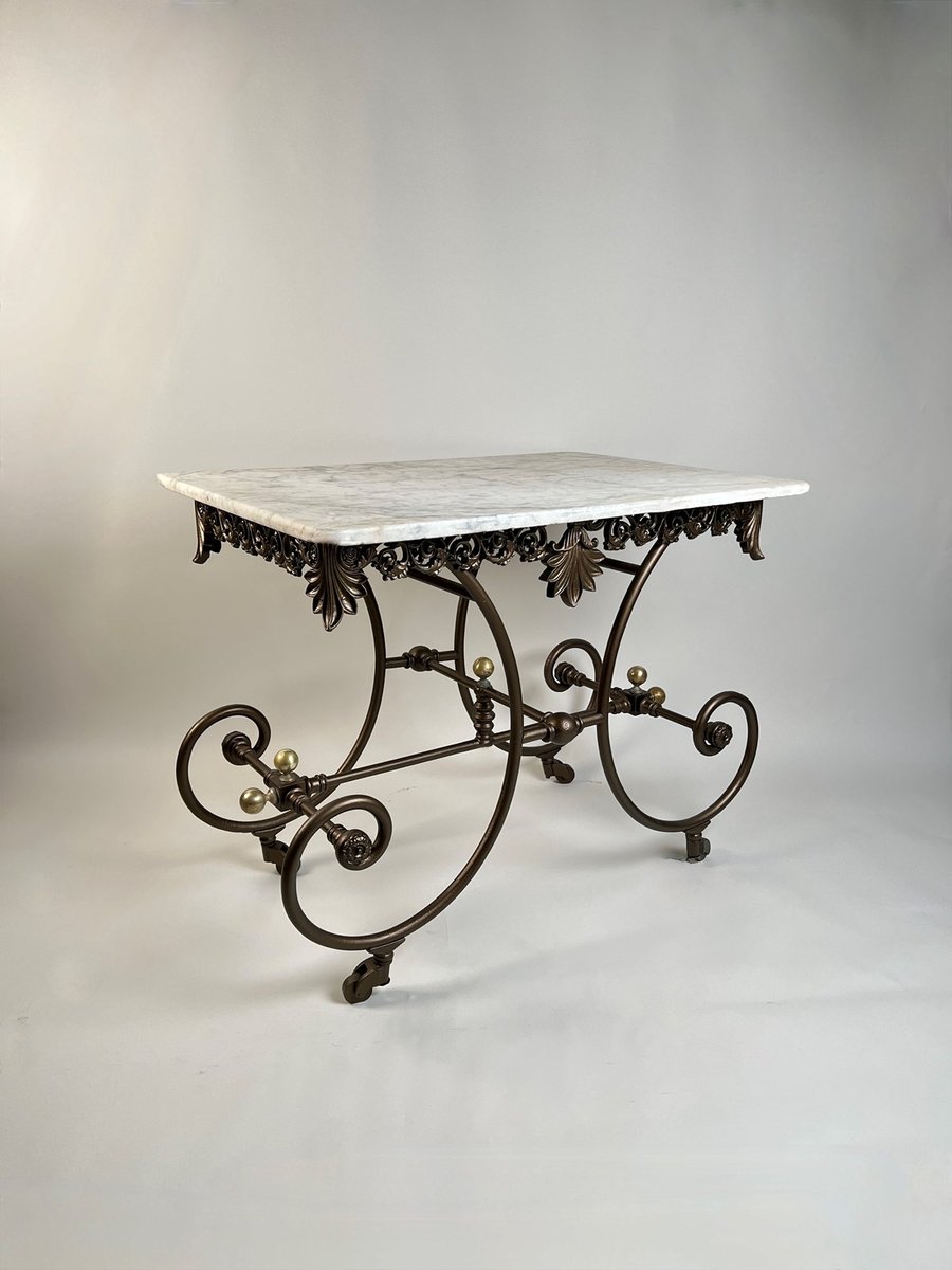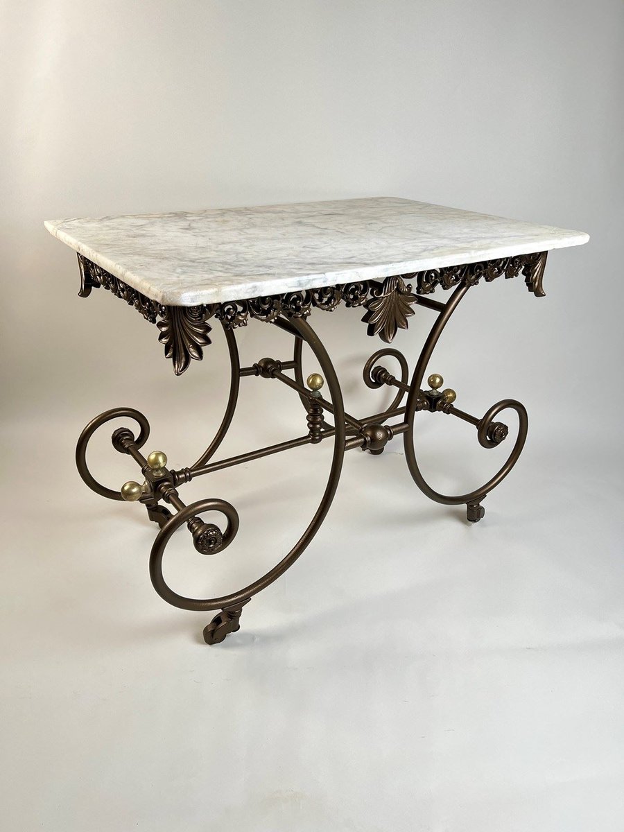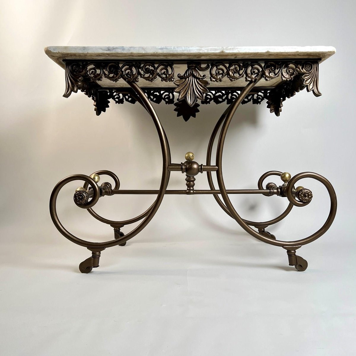 Antique French Wrought Iron and Marble Patisserie Table, 1890s