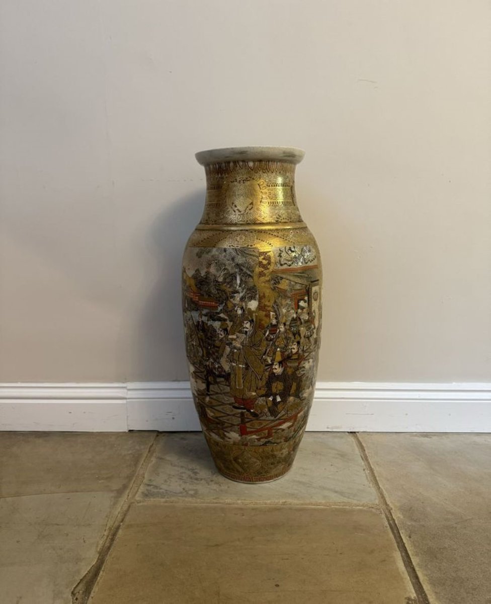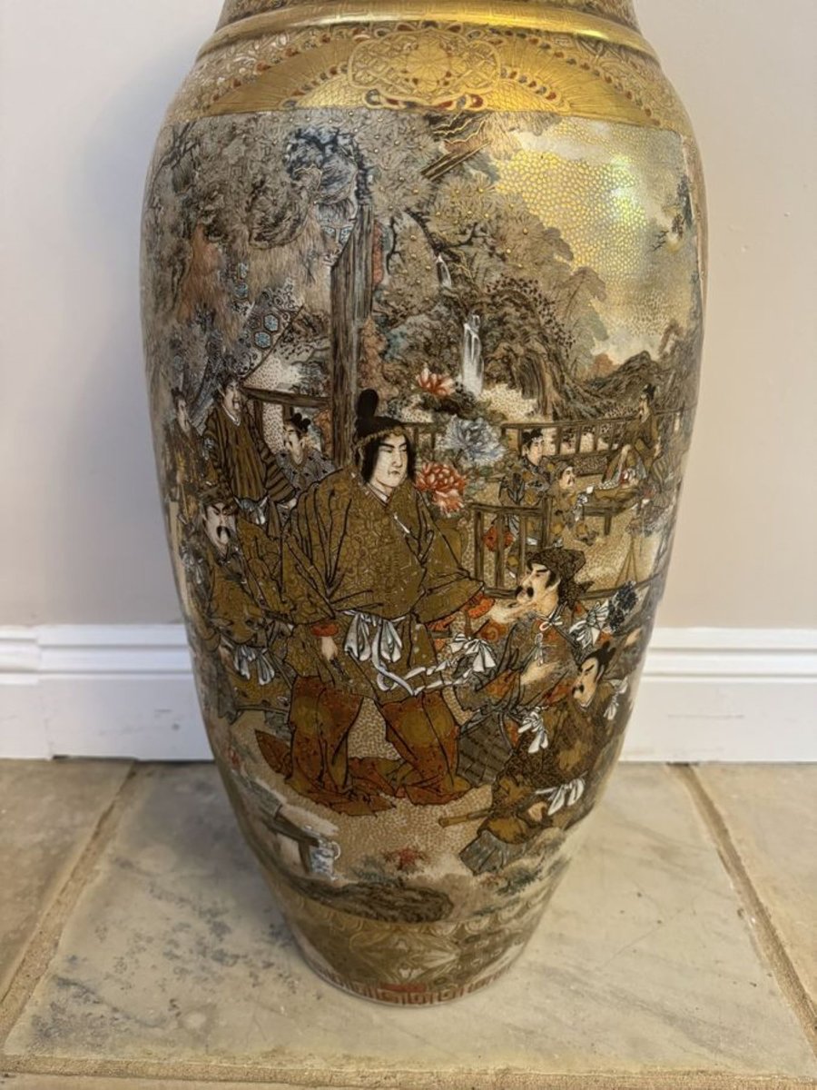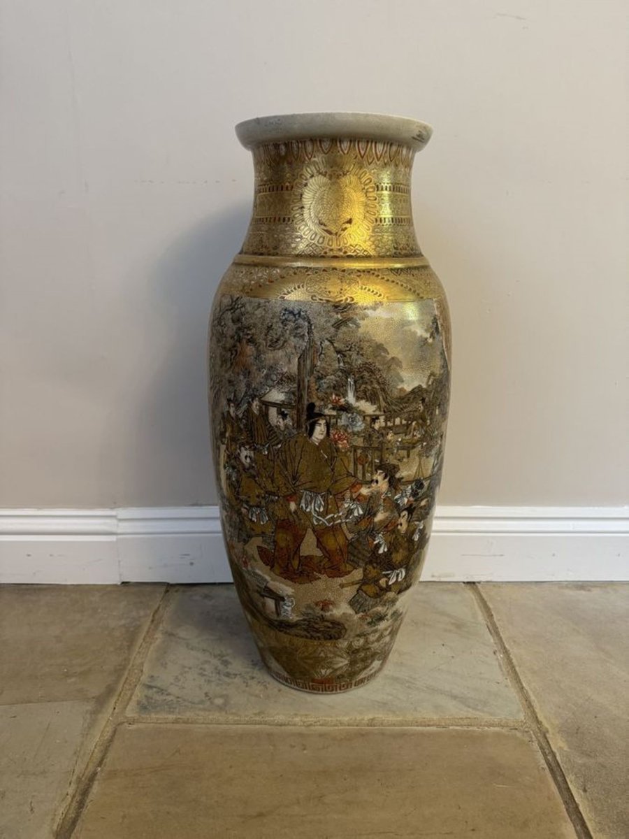 Antique Japanese Satsuma Floor Standing Vase, 1880
