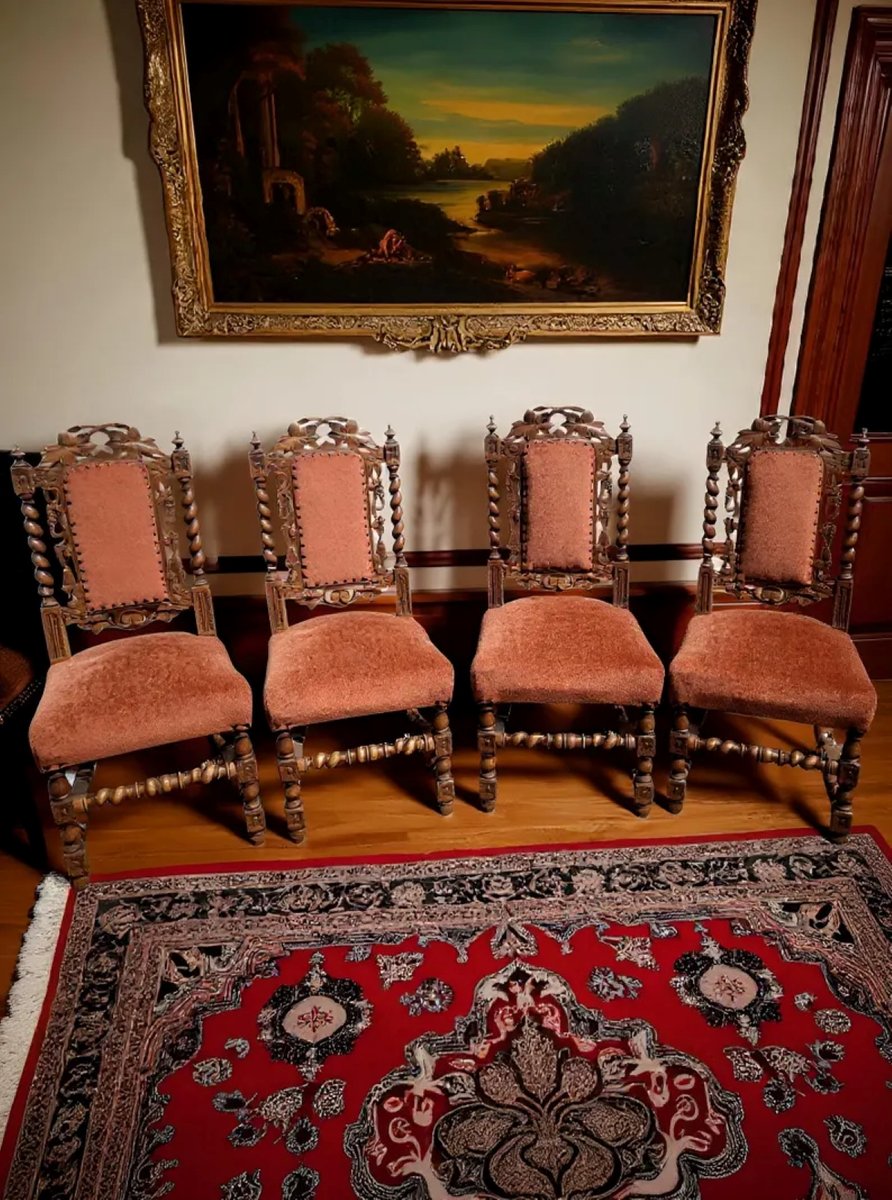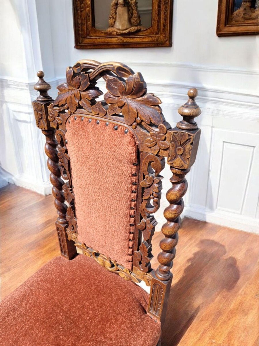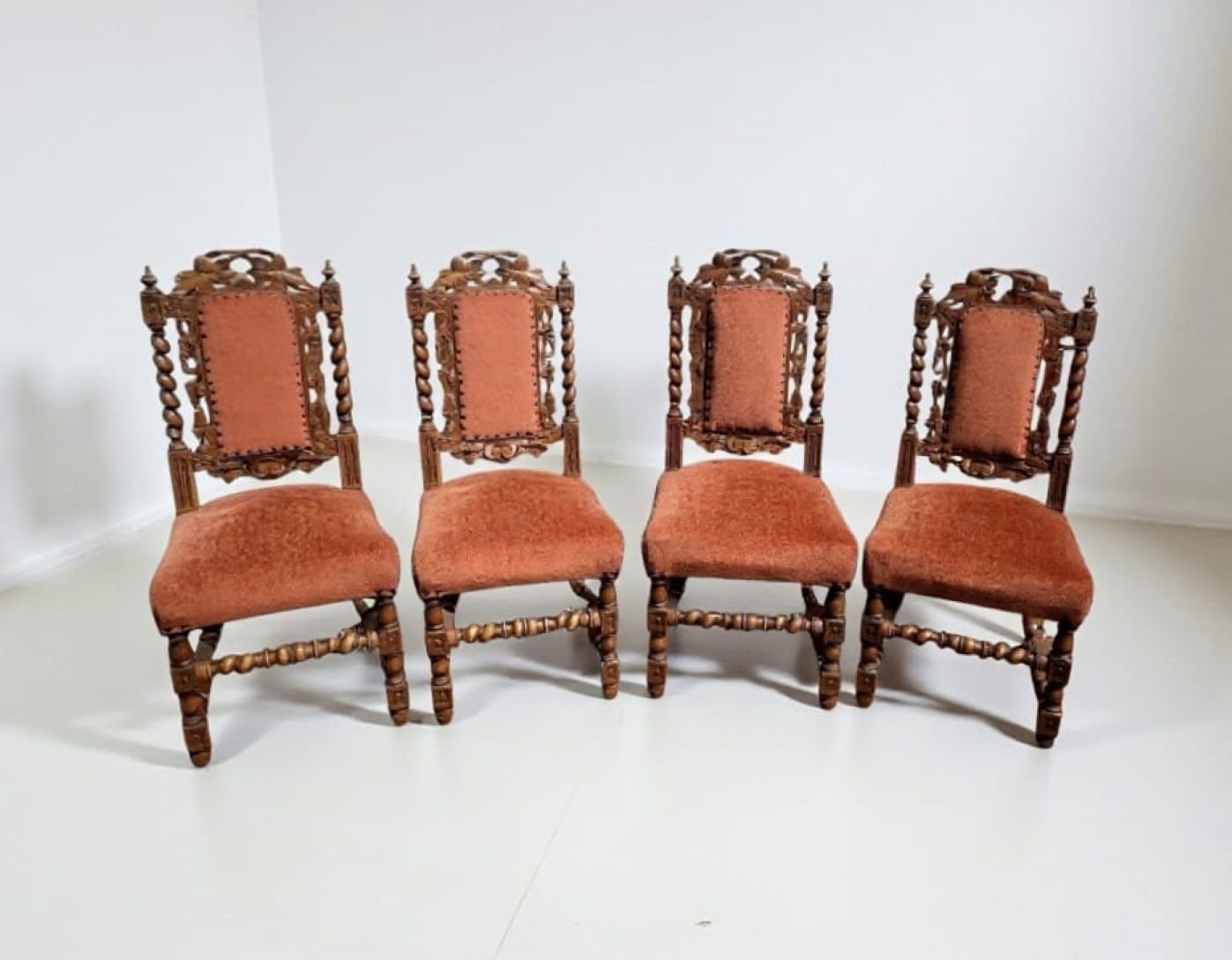 Antique Renaissance Revival Oak Dining Chairs, 1850s, Set of 4