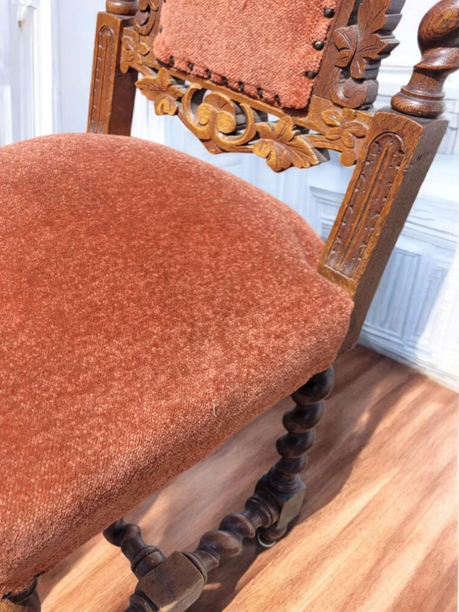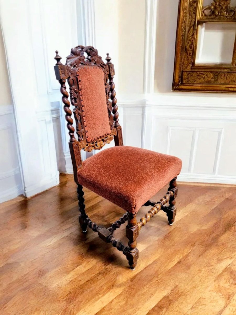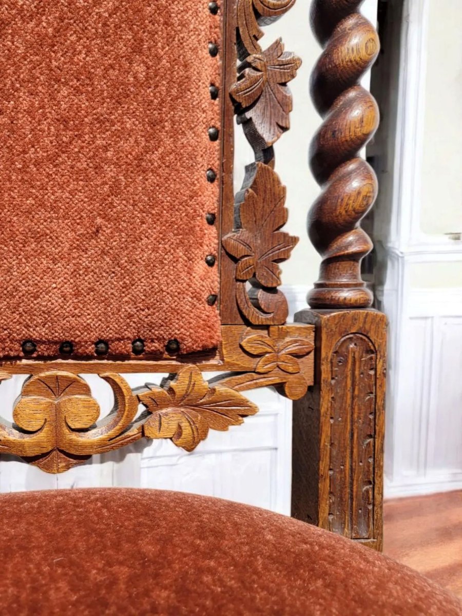 Antique Renaissance Revival Oak Dining Chairs, 1850s, Set of 4