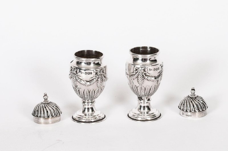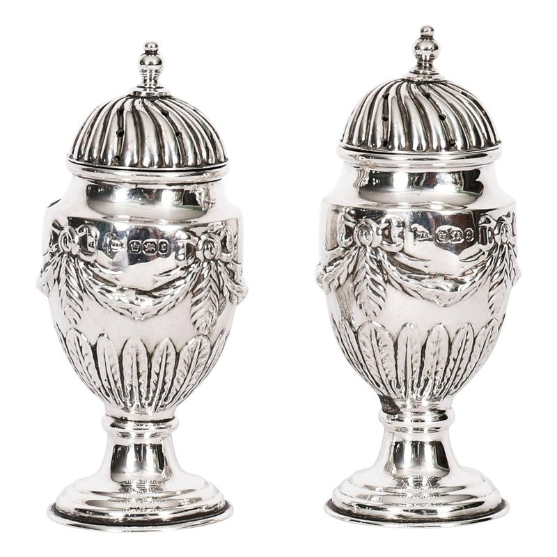 Antique Sterling Silver Salt and Pepper Shakers, 1885, Set of 2