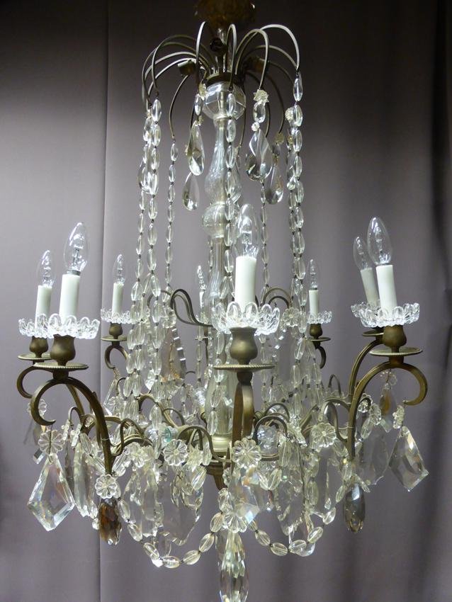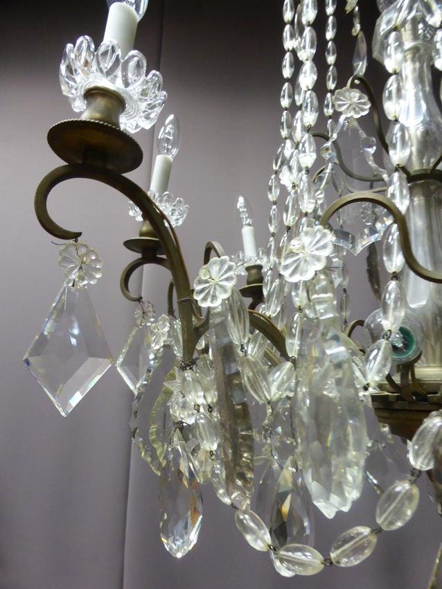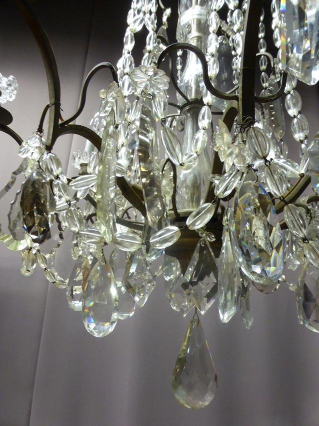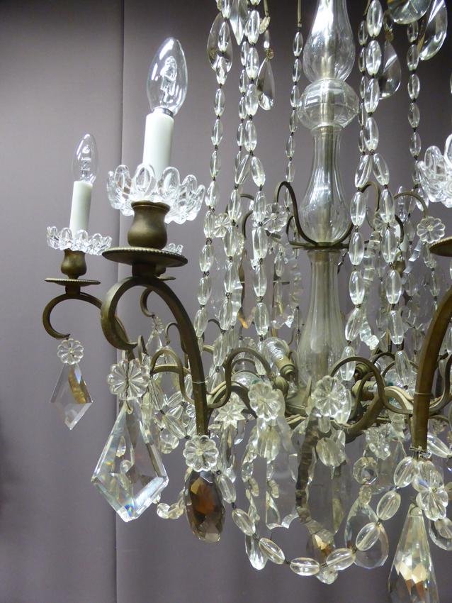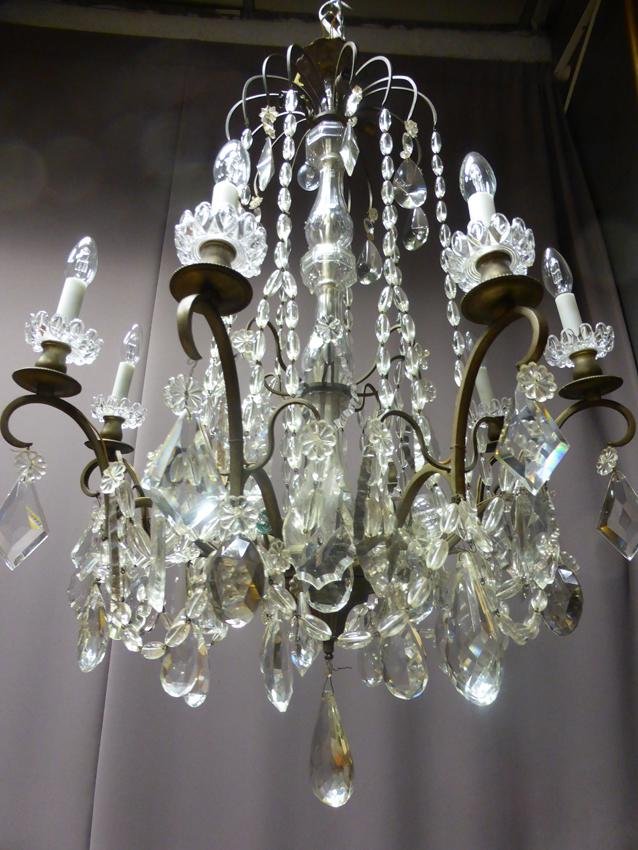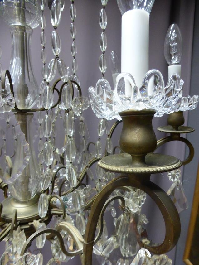 Antique XIX Bronze and Crystal Chandelier