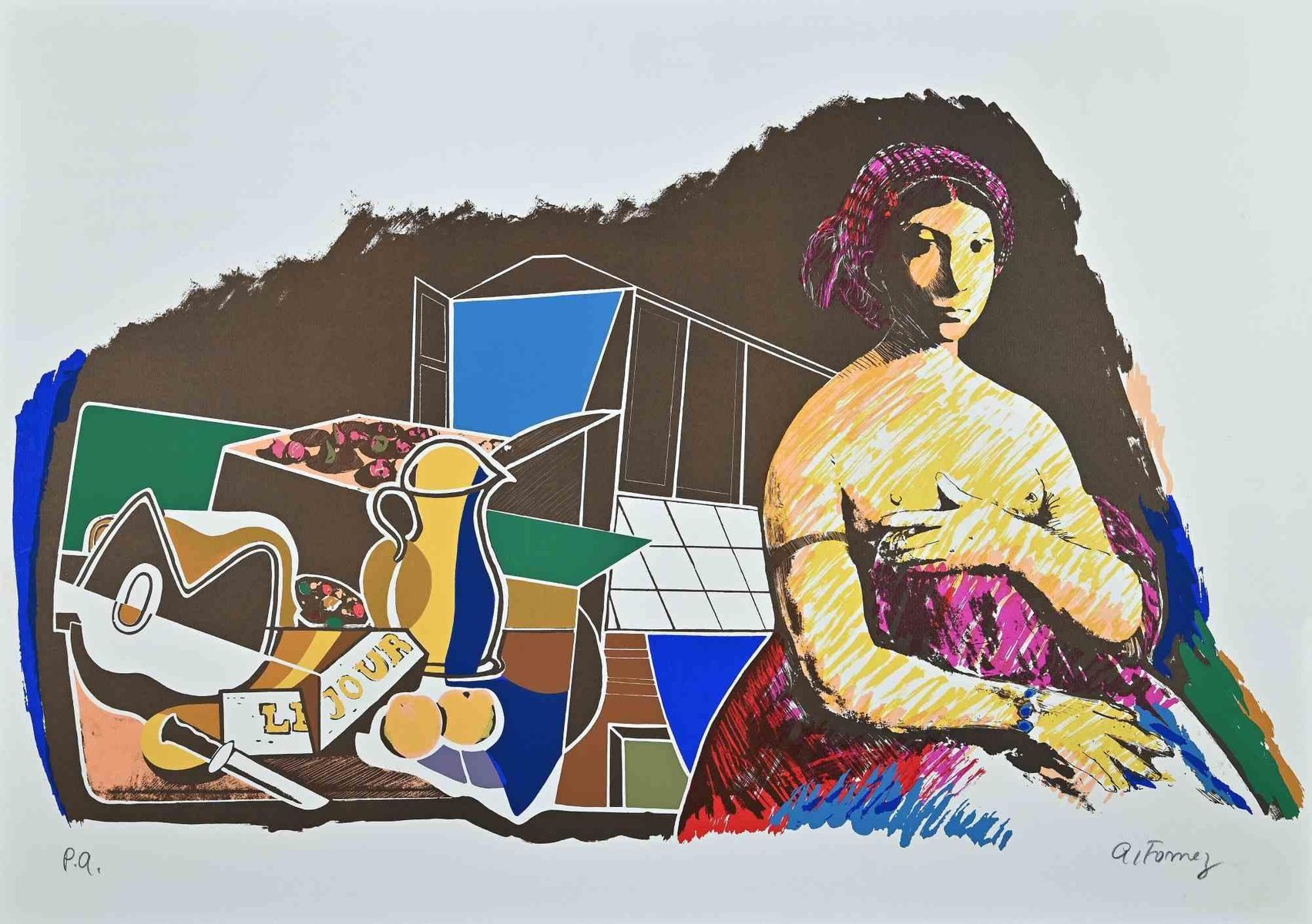 Antonio Fomez, La Fornarina, Original Lithograph, Mid 20th-Century