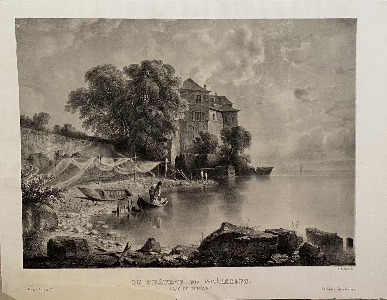 Antonio Fontanesi, Lac De la Geneve, Lithograph, 19th Century