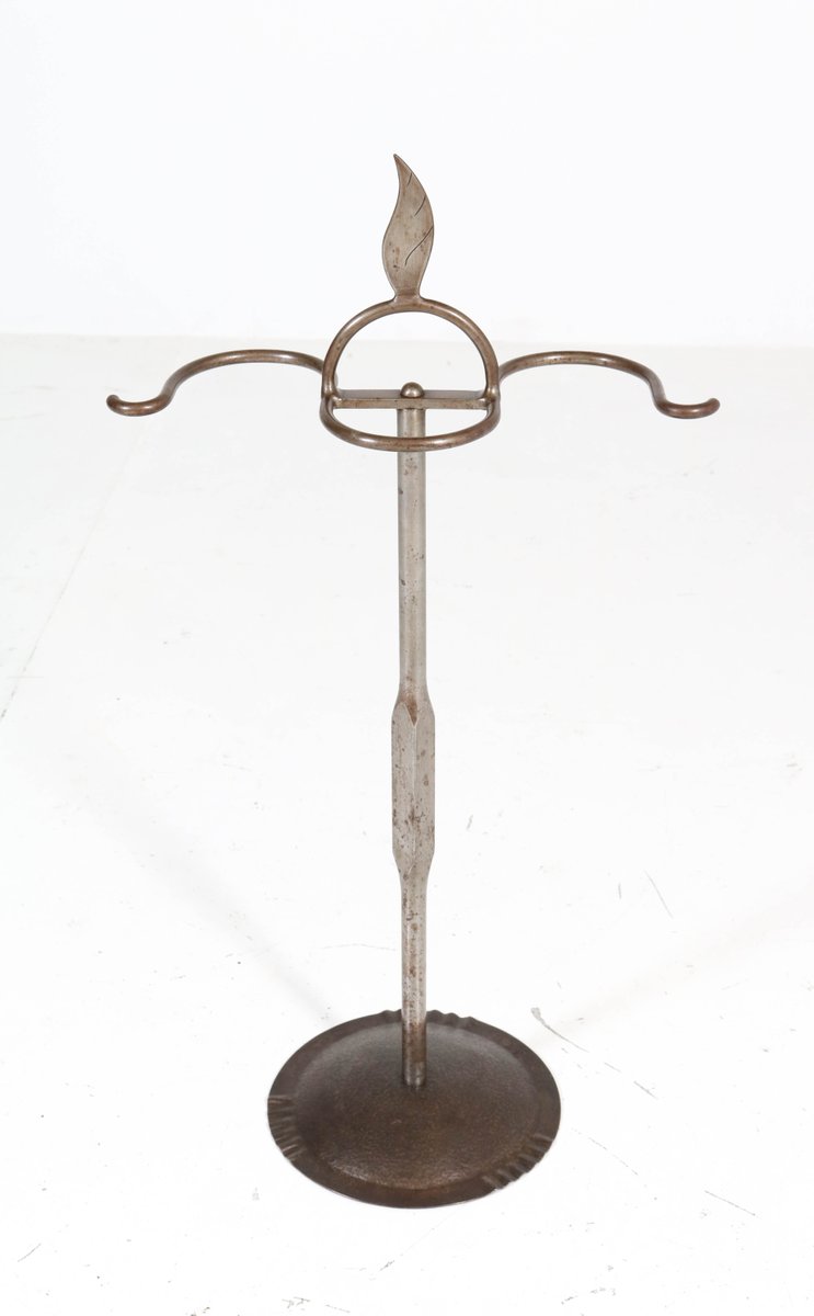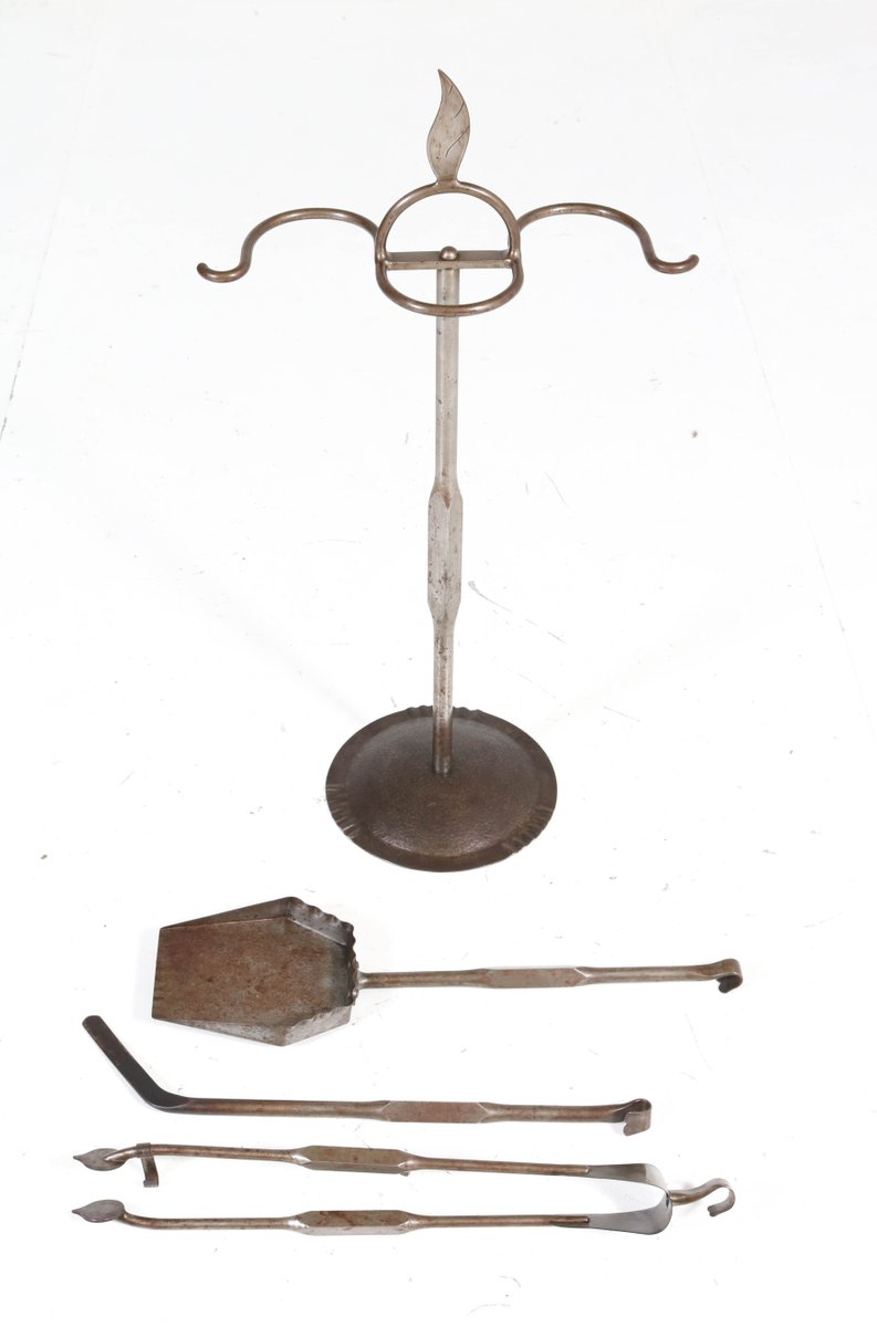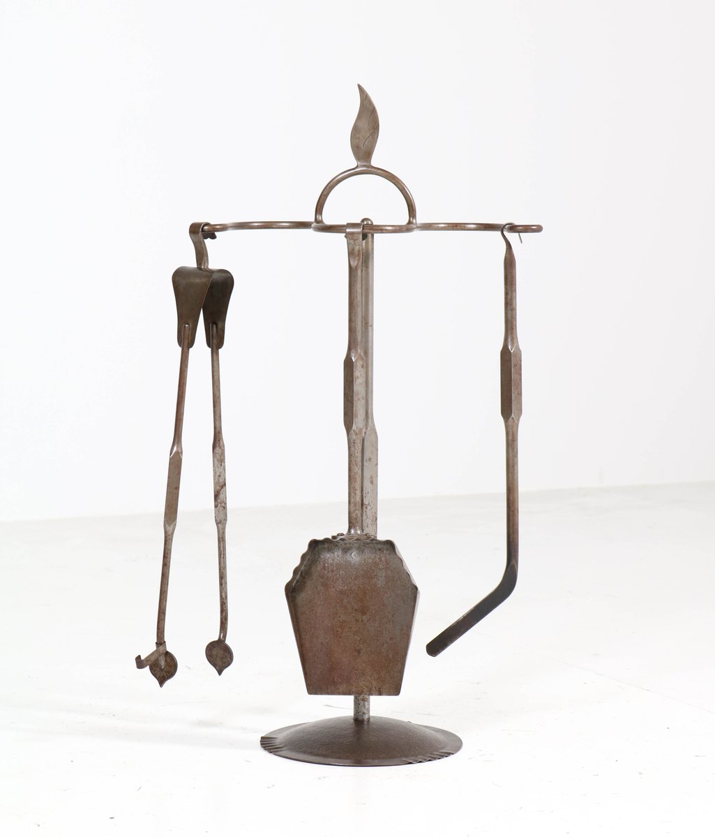 Art Deco Amsterdam School Patinated Wrought Iron Fireplace Tools, 1920s