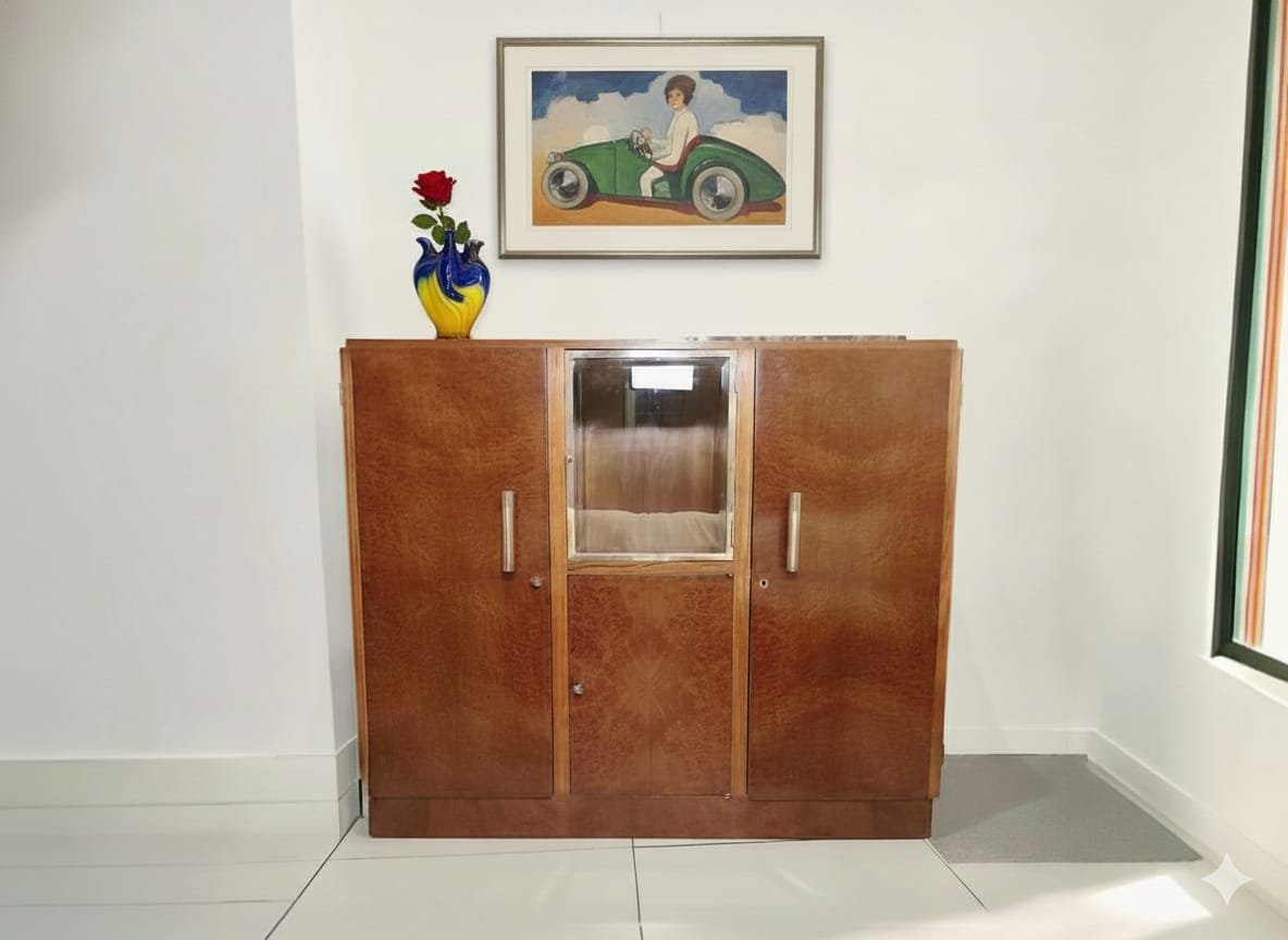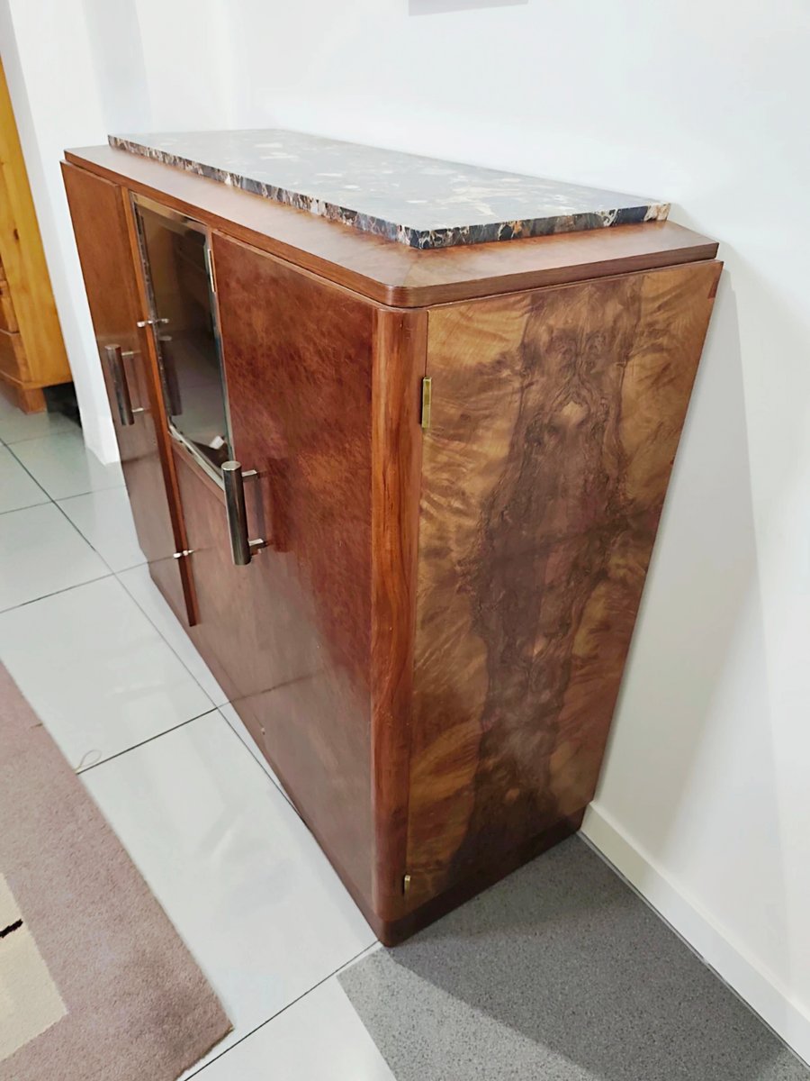 Art Deco Bar Cabinet in Burl Walnut, 1930s