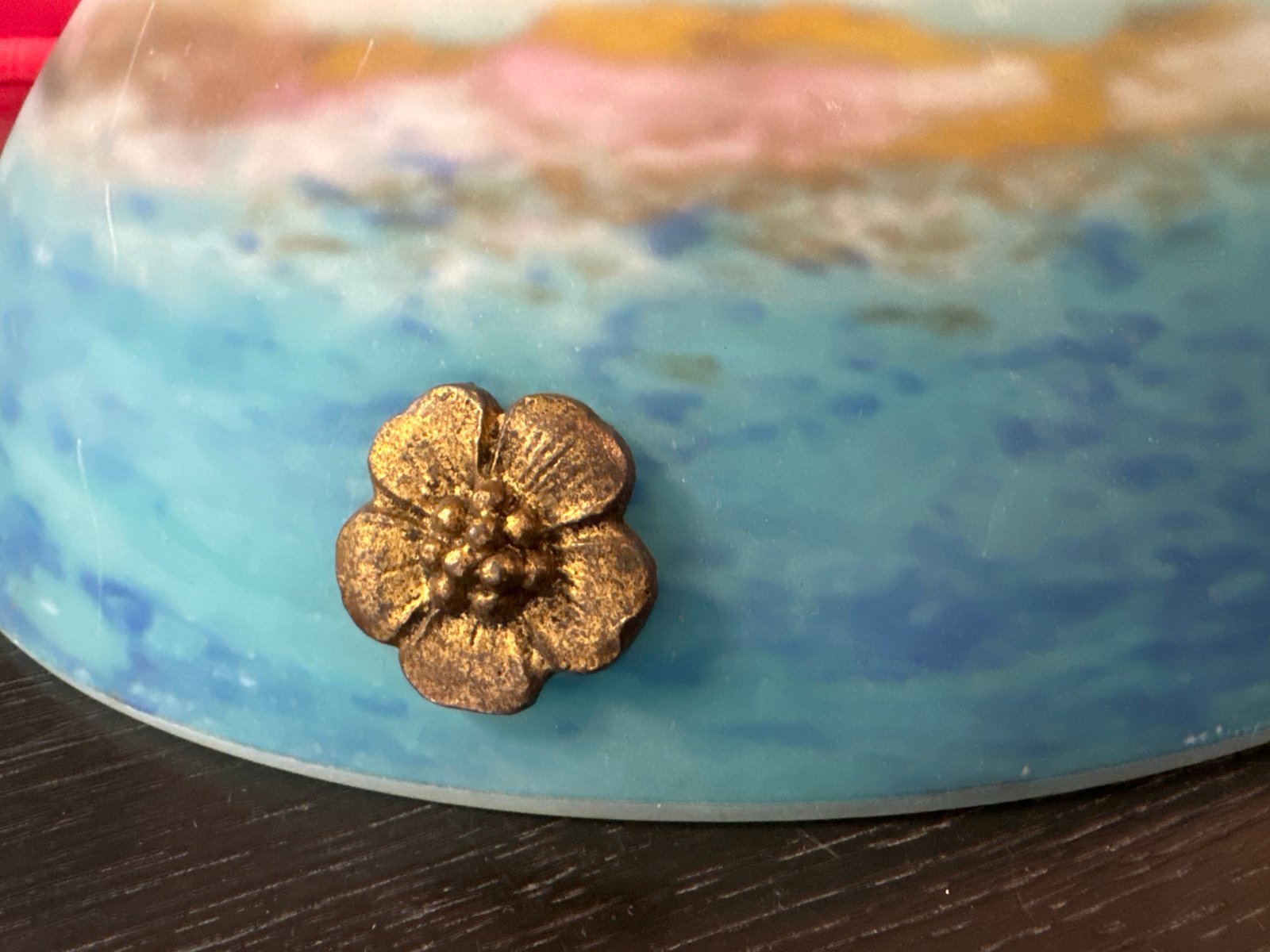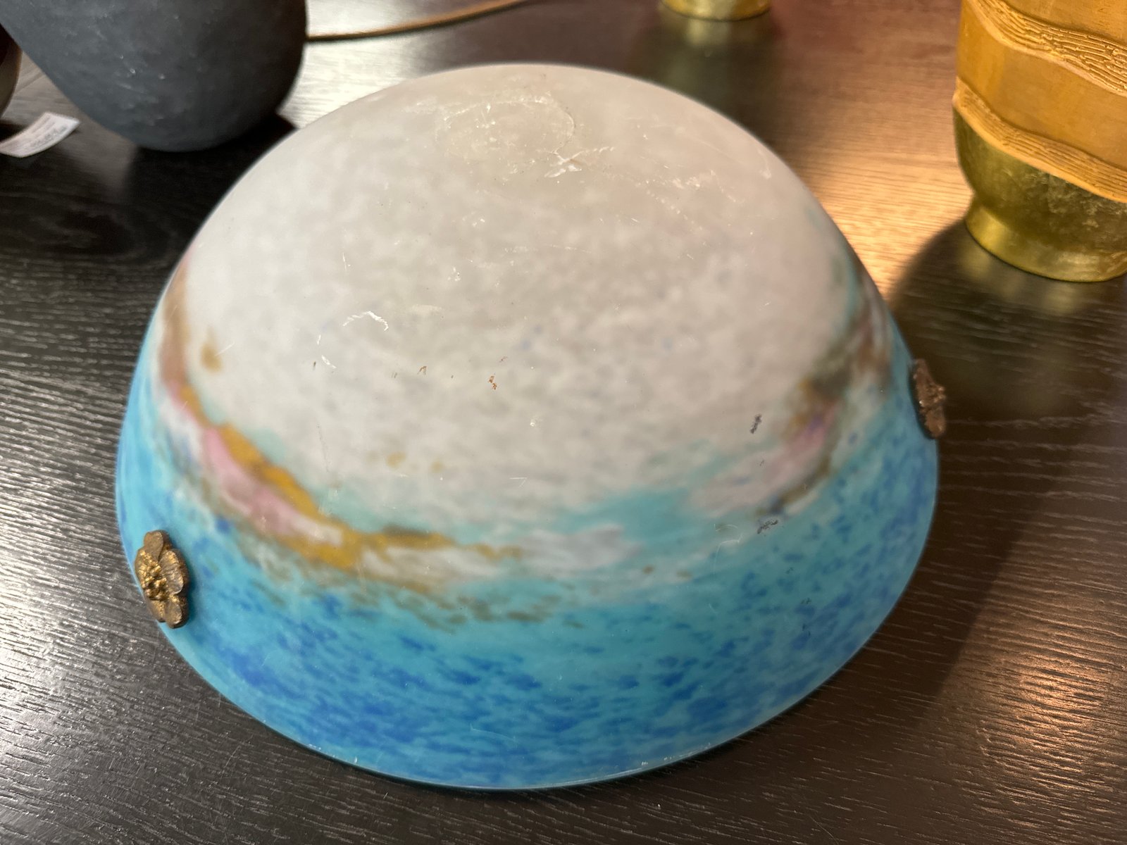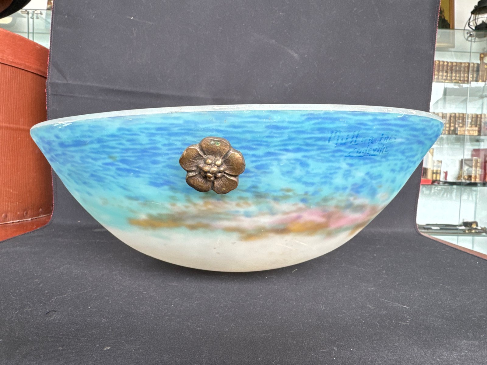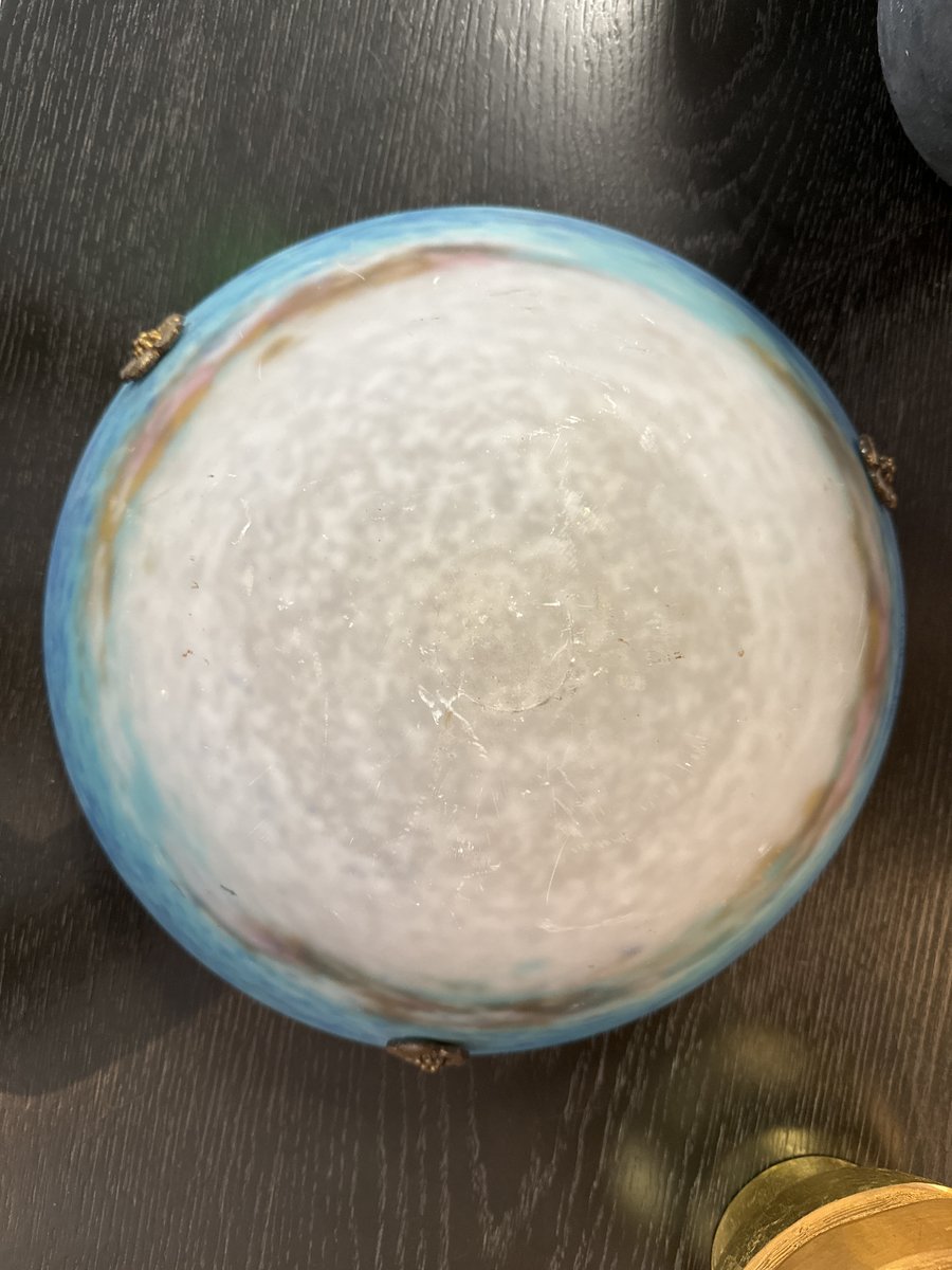 Art Deco Basin Chandelier in Blue and White Marmoreal Glass by Muller Frères Luneville, 1925