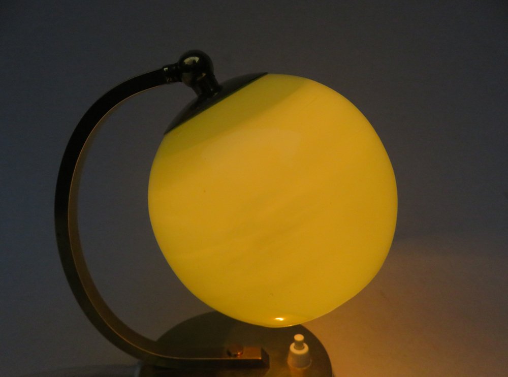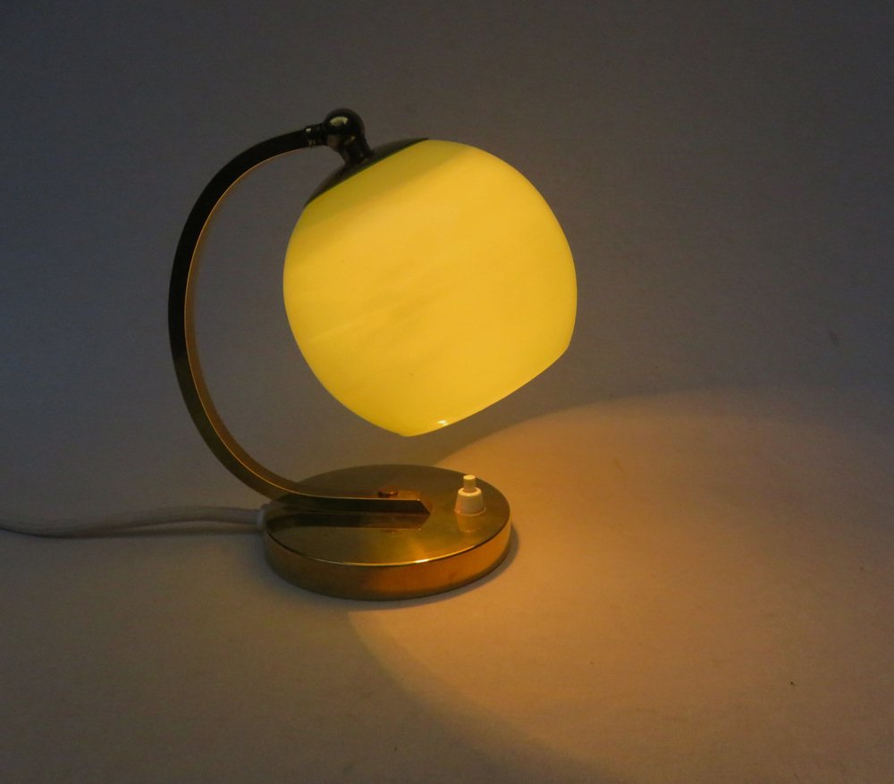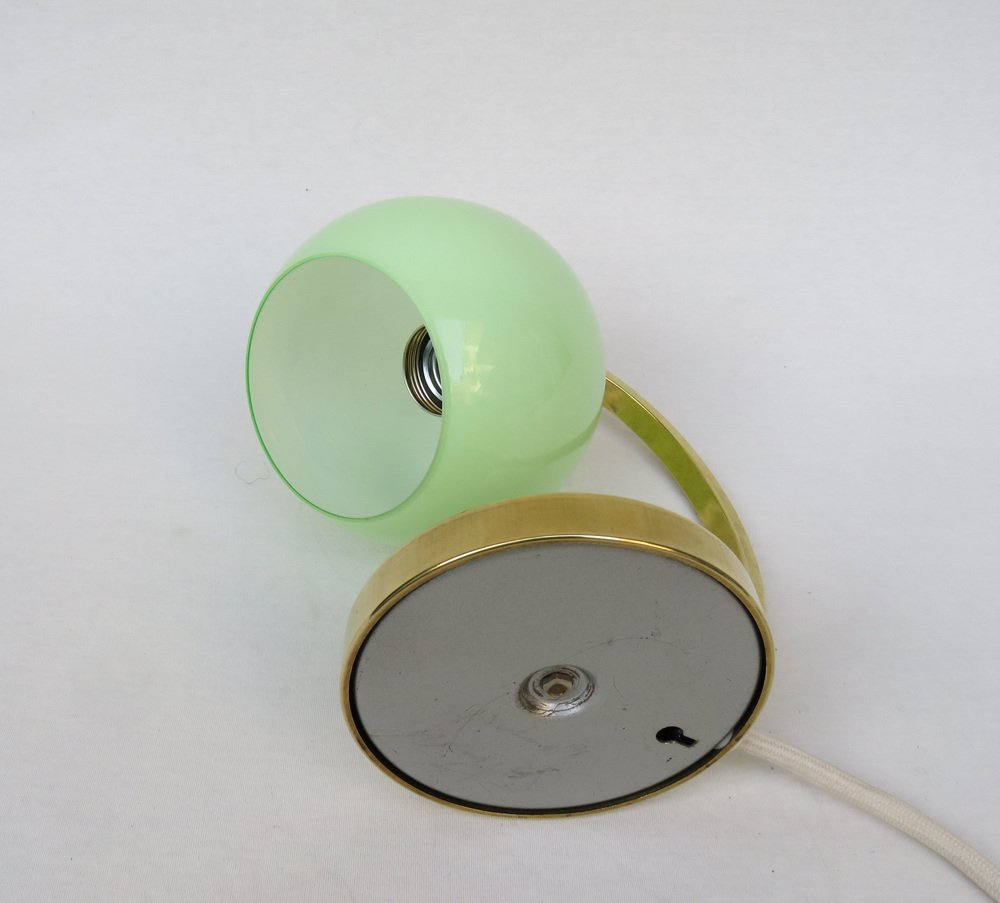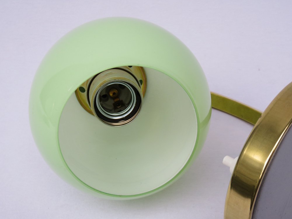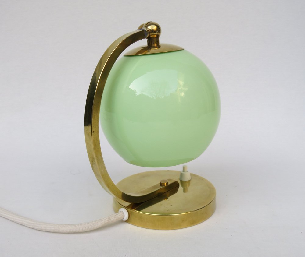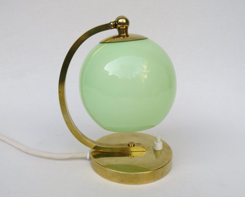 Art Deco Bedside Lamp in Brass with Green Cased Glass Shade, 1920s