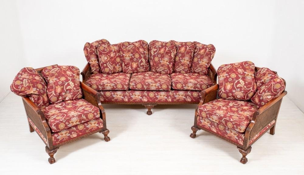 Art Deco Bergere Suite in Mahogany, 1920, Set of 3